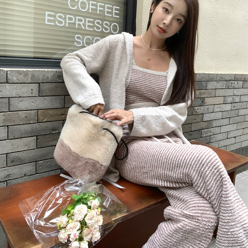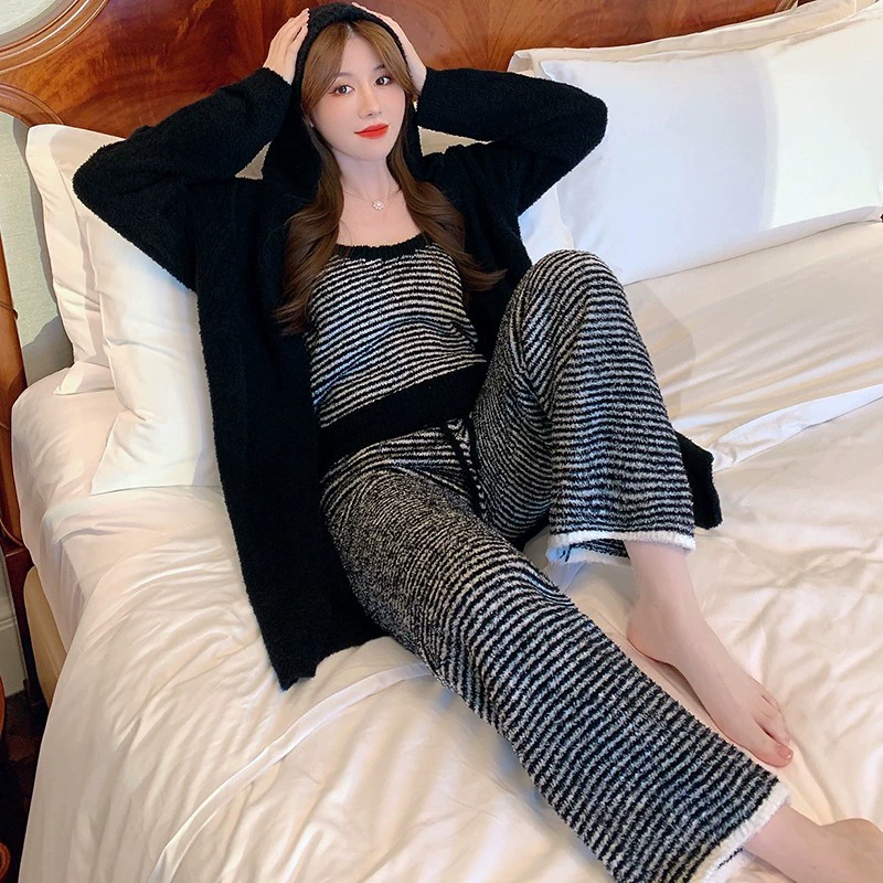| nameOriginal | Women's coral velvet rainbow striped suspender outer pajamas |