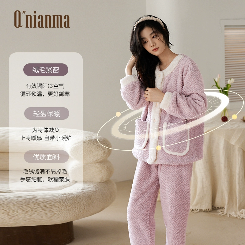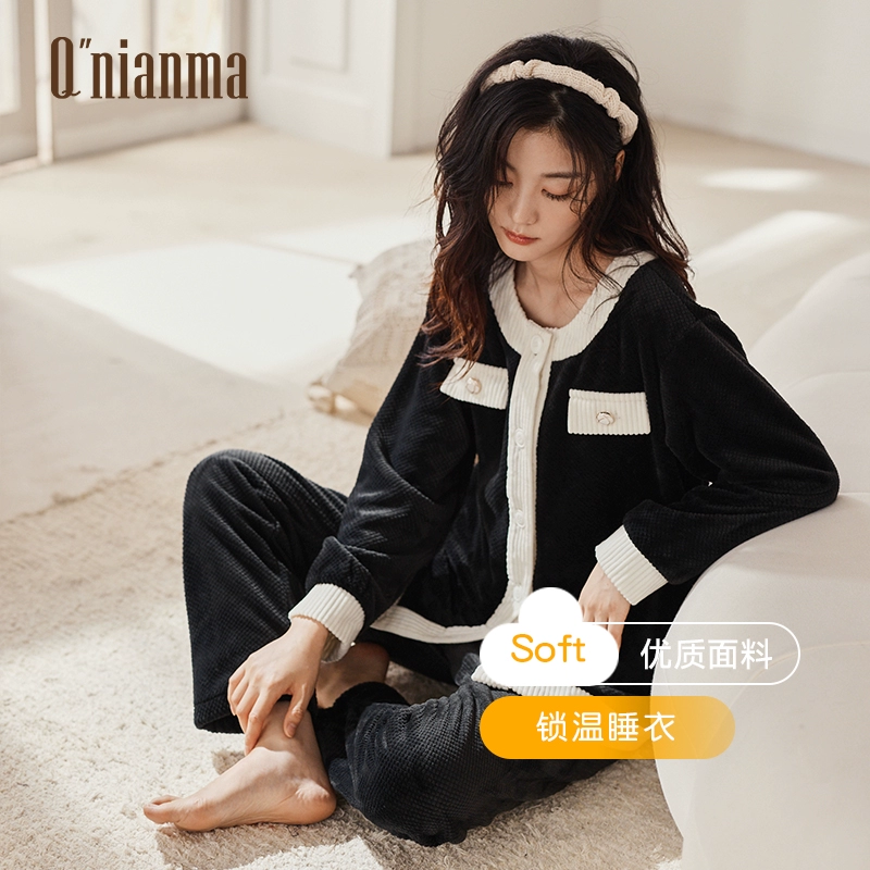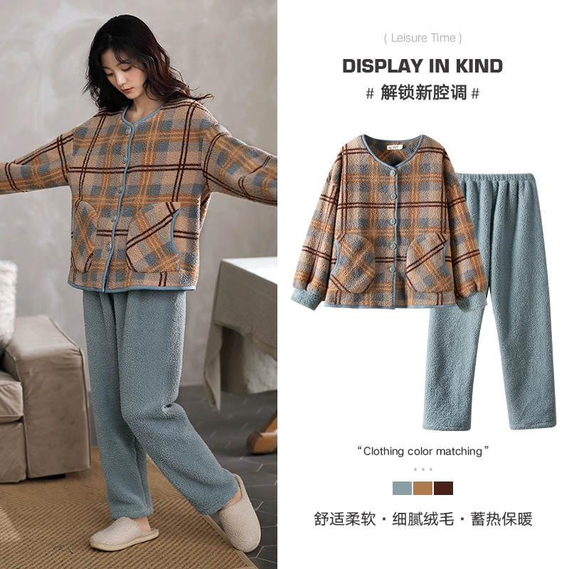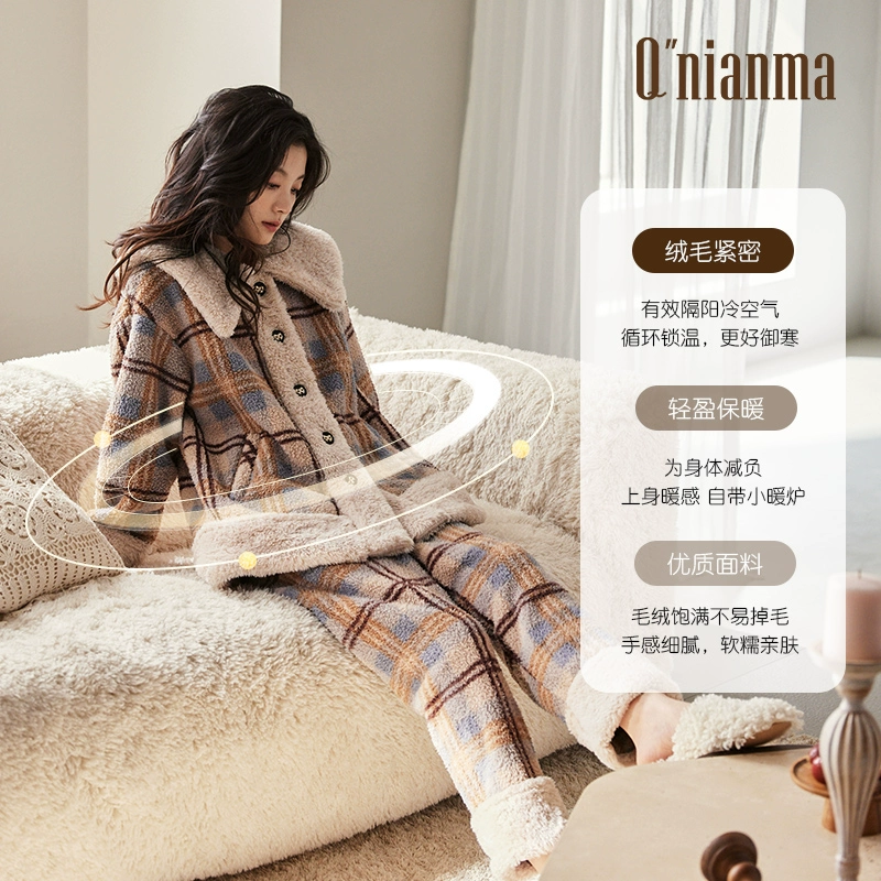 | nameOriginal | Women's coral velvet thickened doll collar plaid warm pajamas |