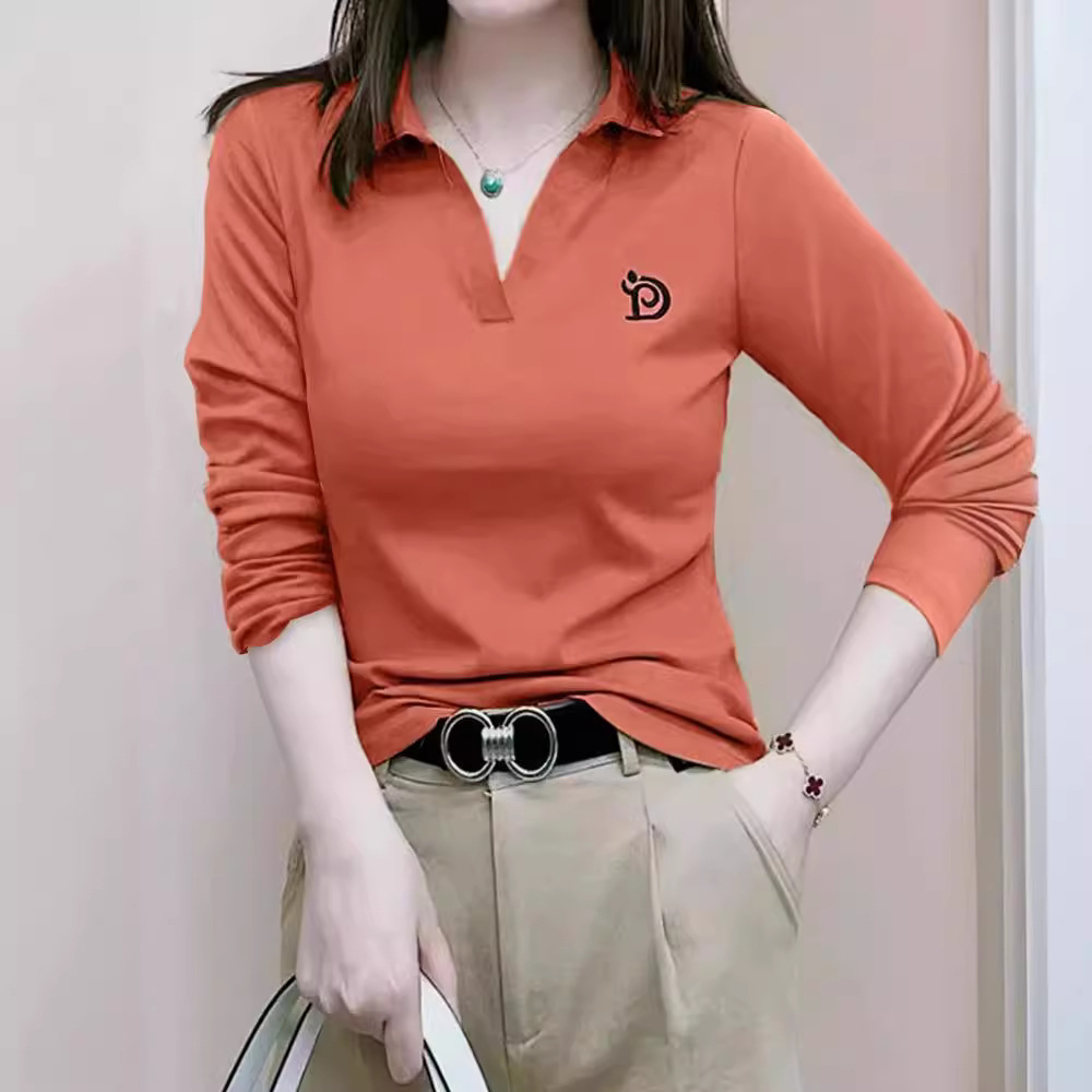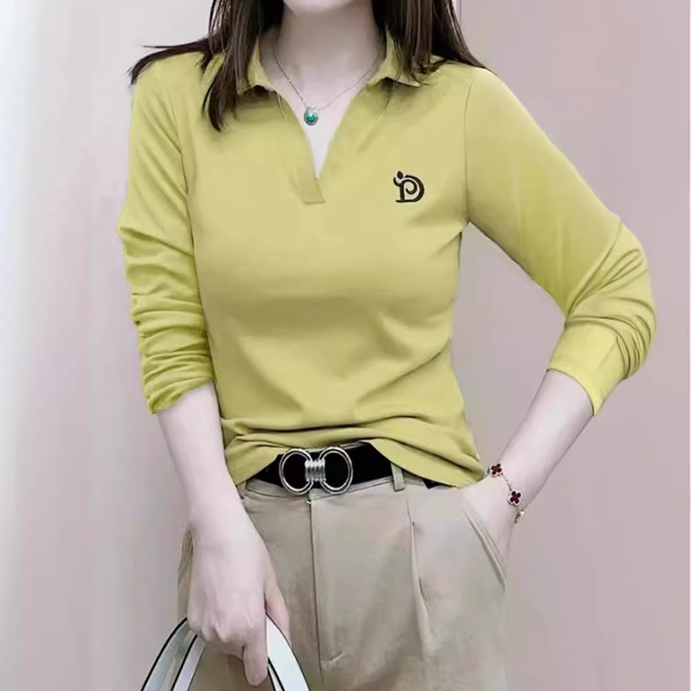 | nameOriginal | Women's cotton long-sleeved T-shirt 2024 Summer new T-shirt popular V-neck slim fit all-match polo lapel top |