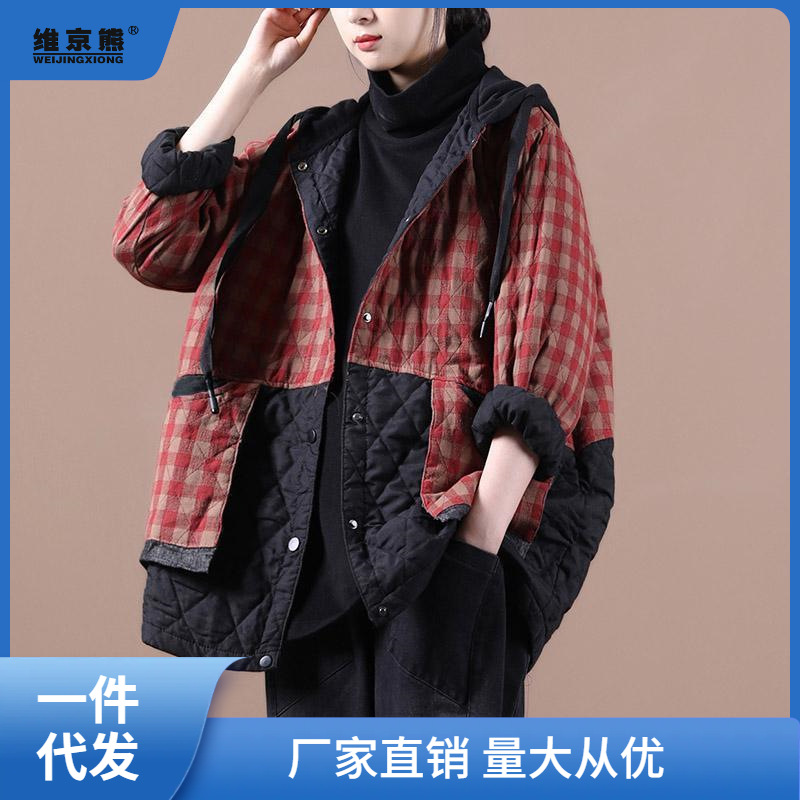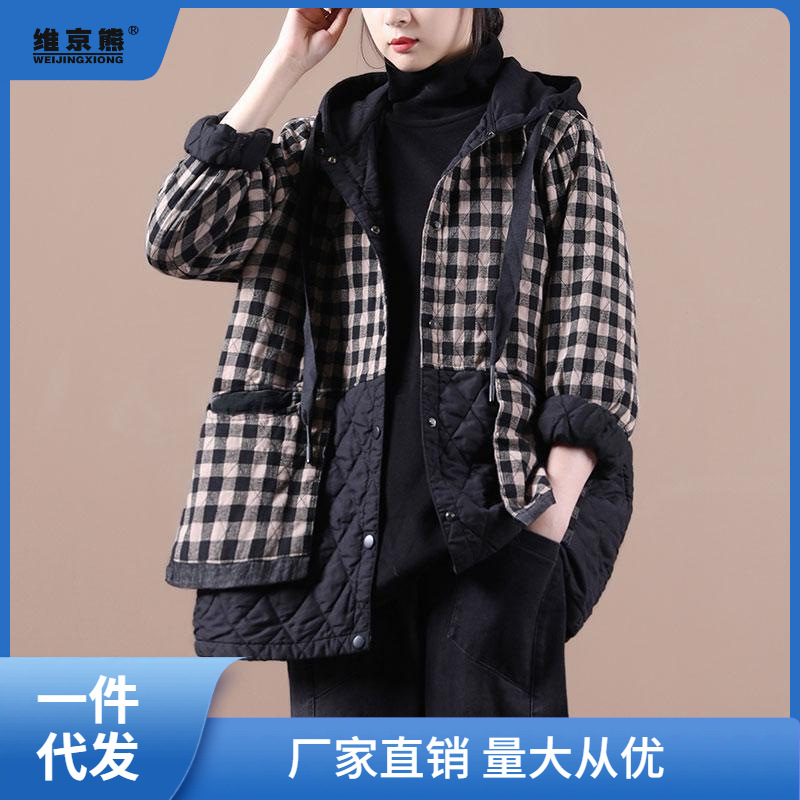 | nameOriginal | Women's cotton-padded coat, cotton-padded coat, thickened Plaid stitching cotton-padded coat, autumn and winter |
