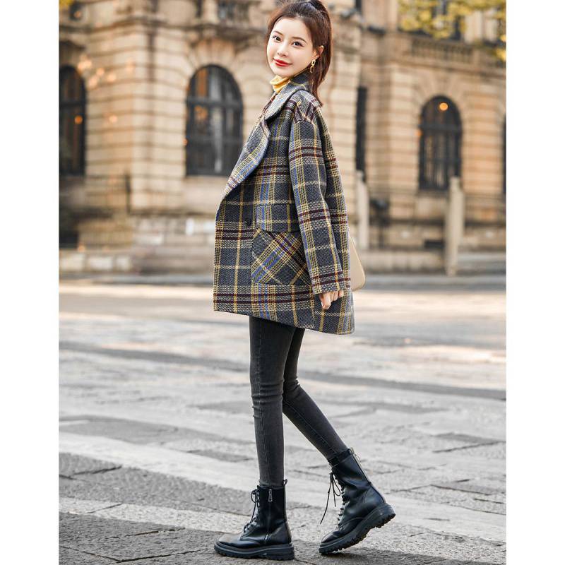 | nameOriginal | Women's cotton-padded fashionable warm coat 2023 Winter New loose plaid Hong Kong style retro Korean style woolen coat |