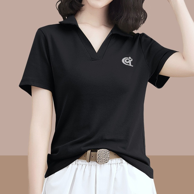 | nameOriginal | Women's cotton short-sleeved T-shirt 2024 Summer new T-shirt popular V-neck slim fit slimming versatile polo lapel top |