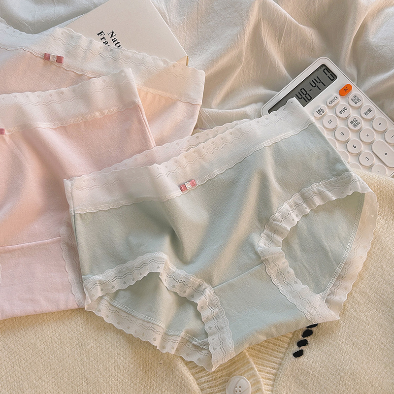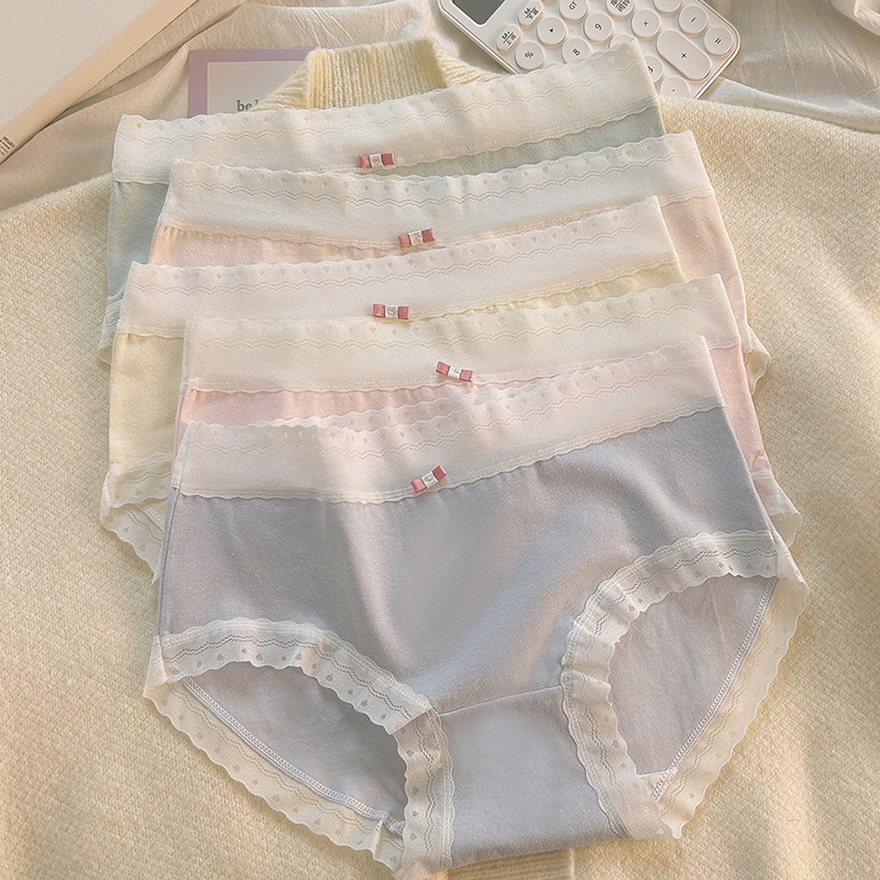 Women’s cotton underwear breathable mid-waist sexy lace edge high elastic girl cute seamless cotton crotch briefs wholesale