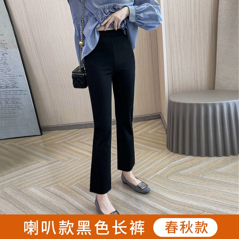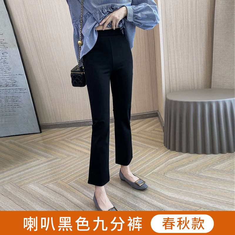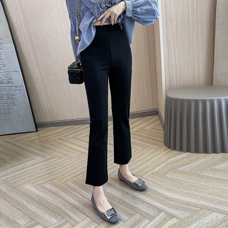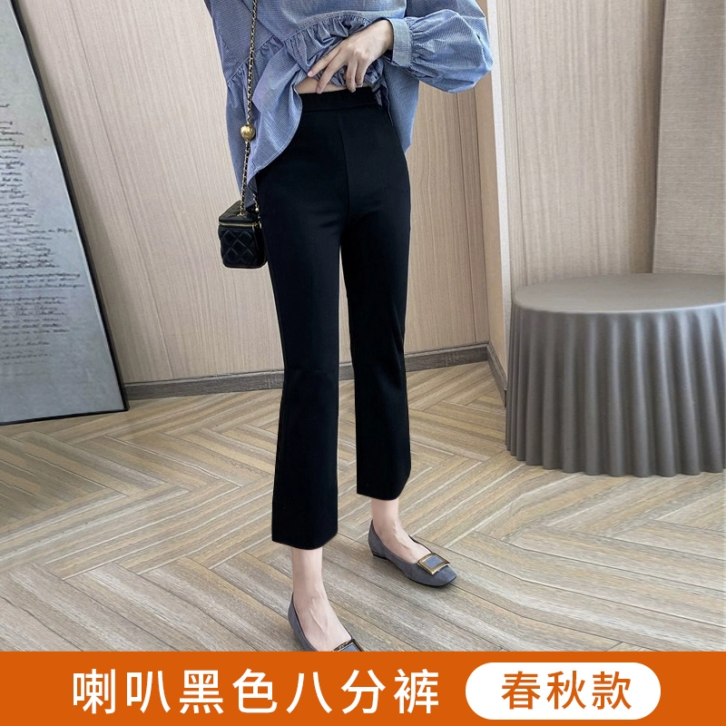 | nameOriginal | Women's cropped trousers 2024 summer thin ice silk eight-point black trousers for small people, temperament, elastic and versatile, casual boot-cut trousers |