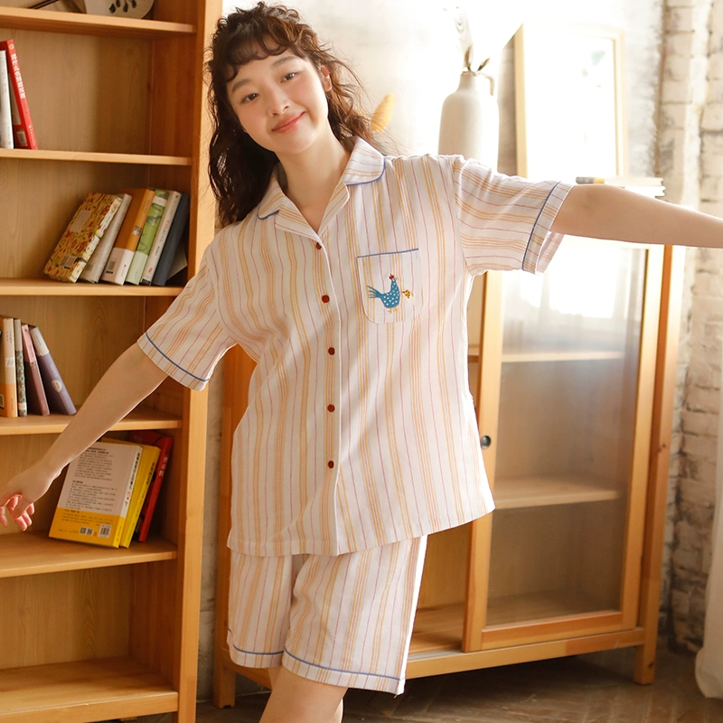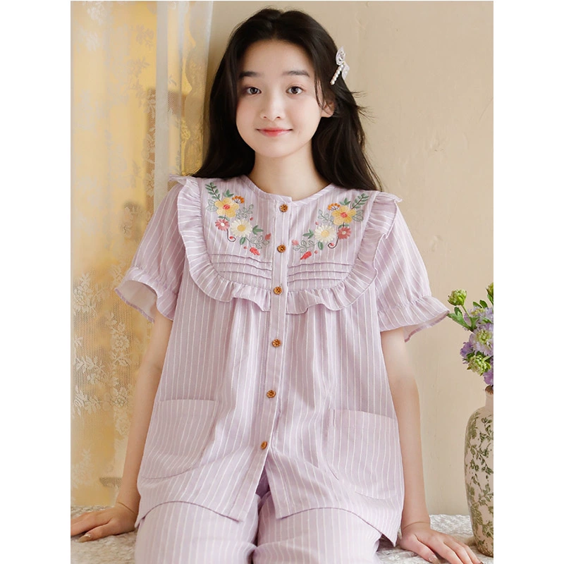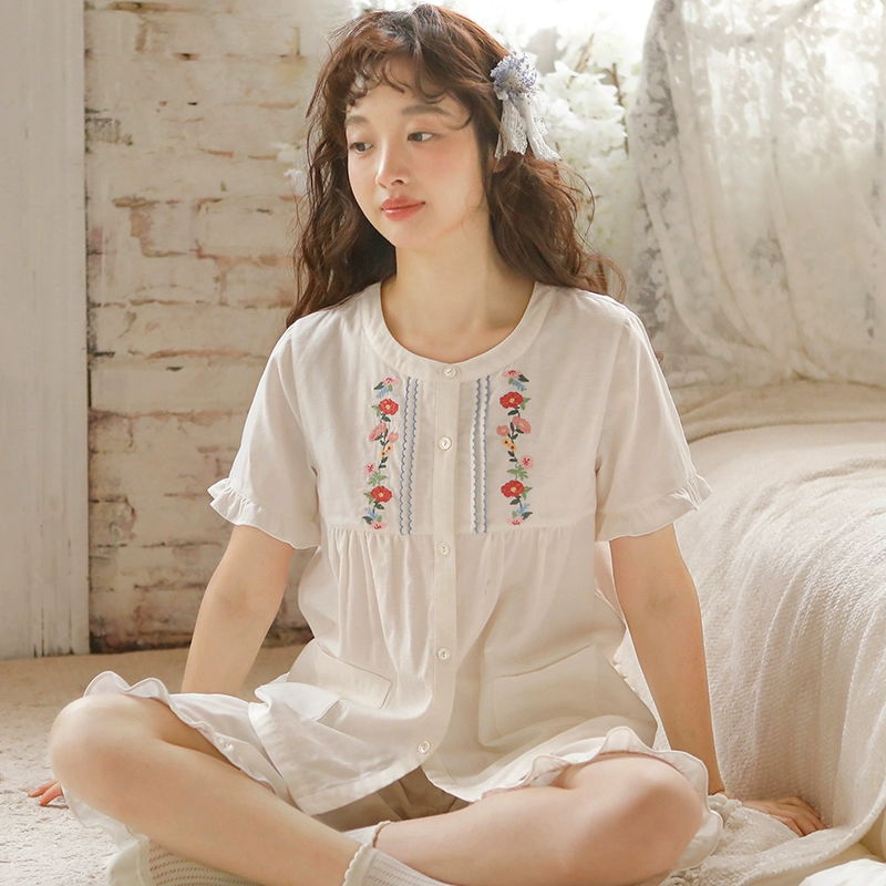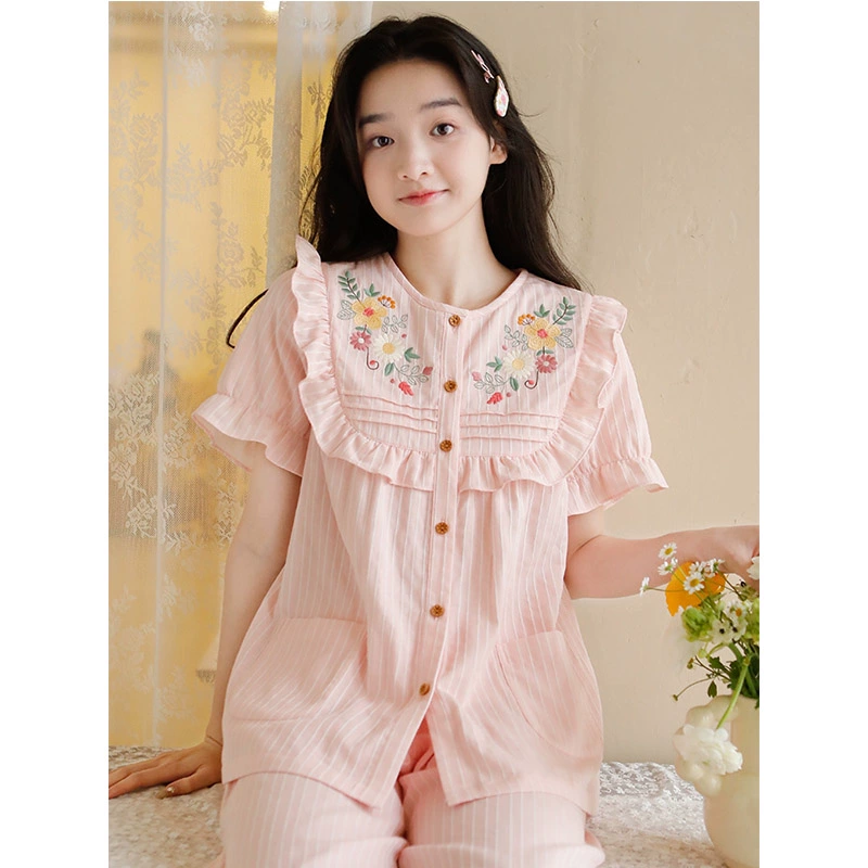 | nameOriginal | Women's cropped trousers woven cotton cardigan floral pajamas |
