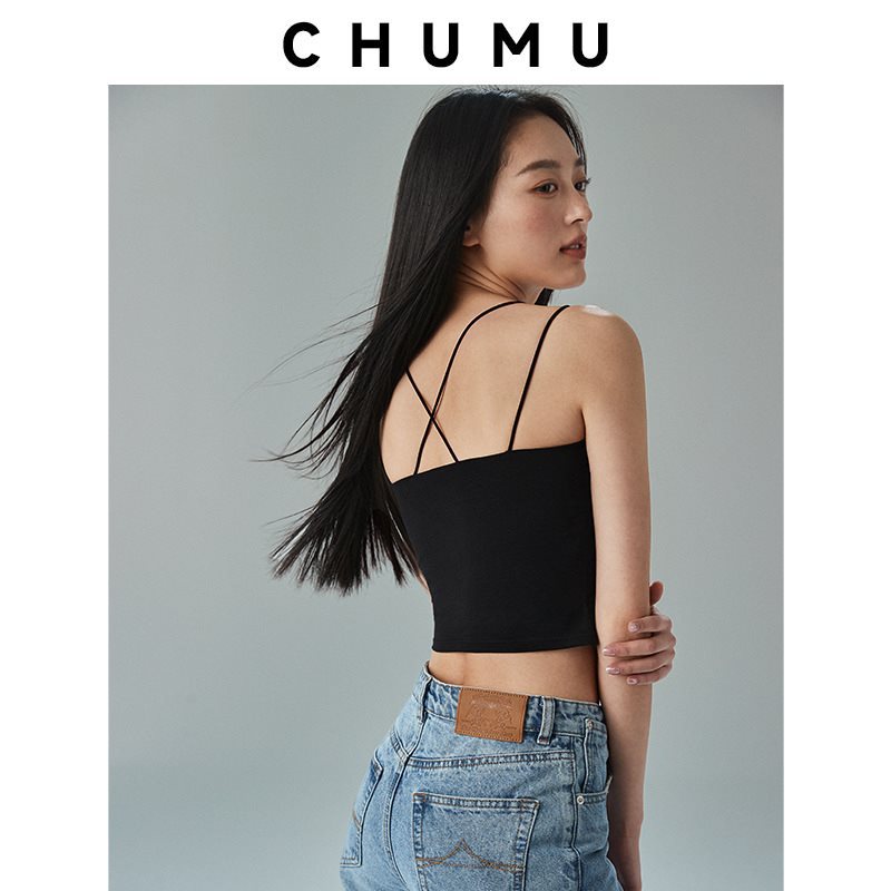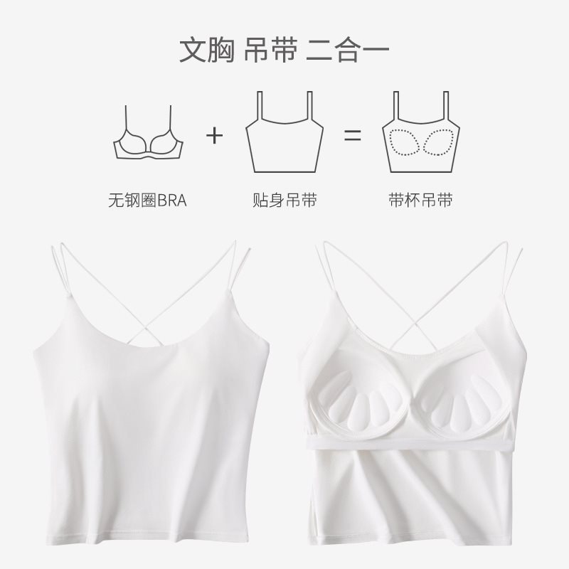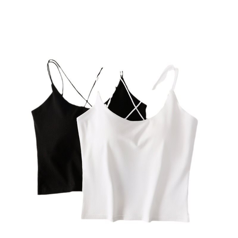 Women's Cross Beauty Back Camisole with Chest Pad Women's Inner Wearing Outer Wearing Small Sexy Navel Five Finger Fixed Cup Machine Washable