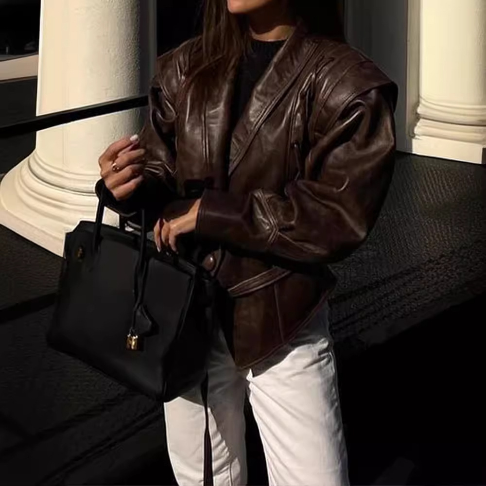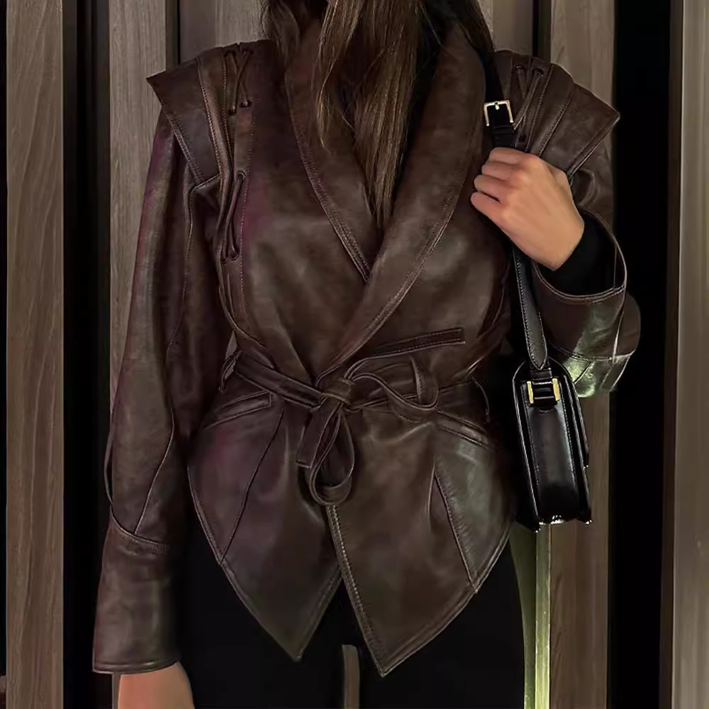 | nameOriginal | Women's Cross-border Fashion Leather Women's Lace-up Coat Texture Open Collar Leather Women |