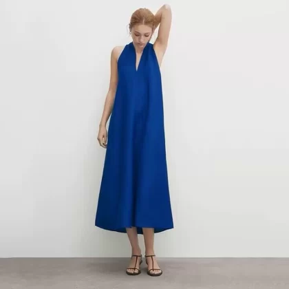 | nameOriginal | Women's cross design elegant halterneck dress MD |