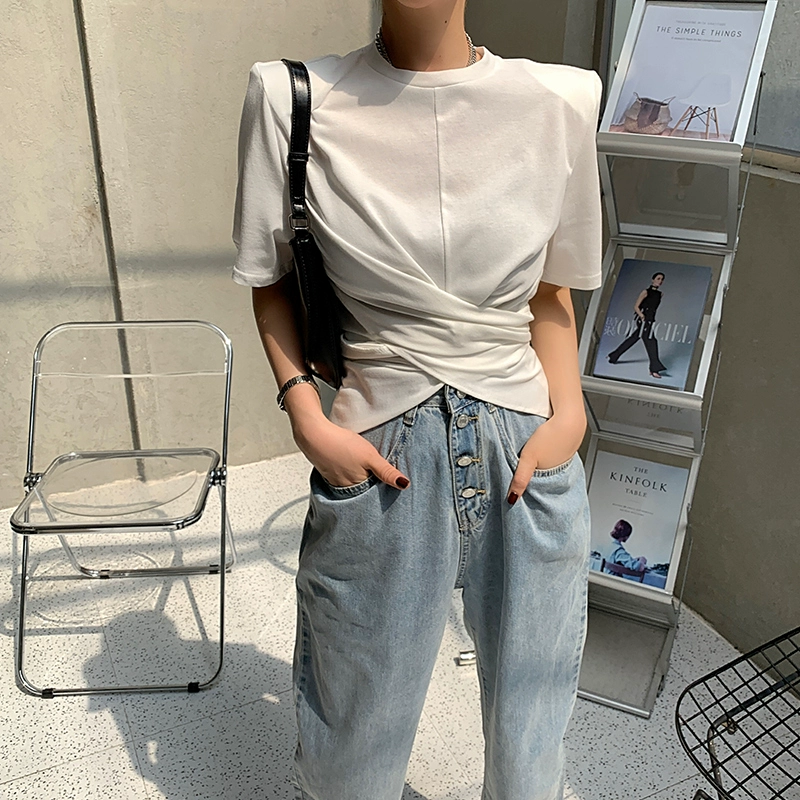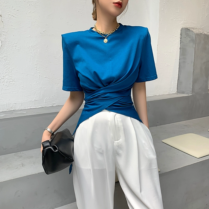 | nameOriginal | Women's Crossover European Stand Shoulder Padded Top Short Sleeve T-Shirt |