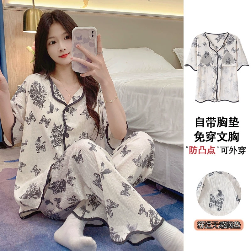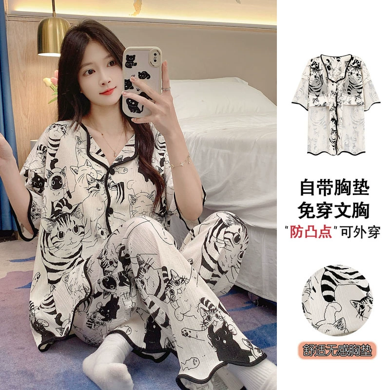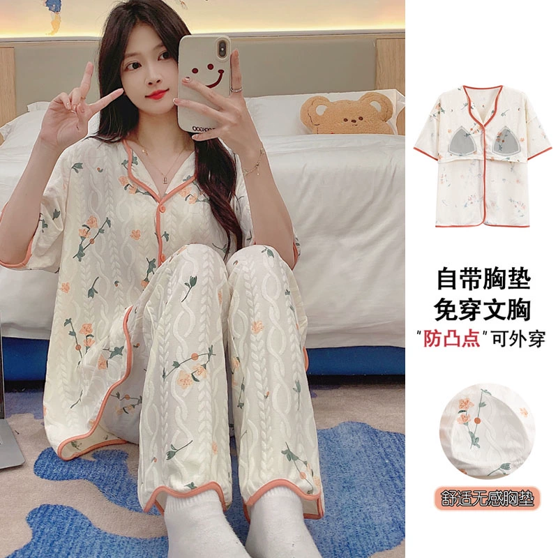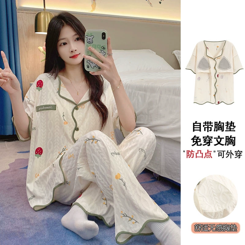 | nameOriginal | Women's cute pure cotton Korean style home wear pajamas with breast pads |