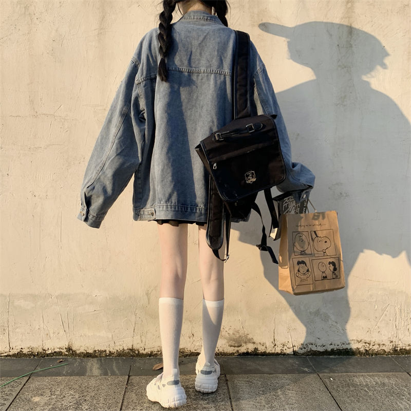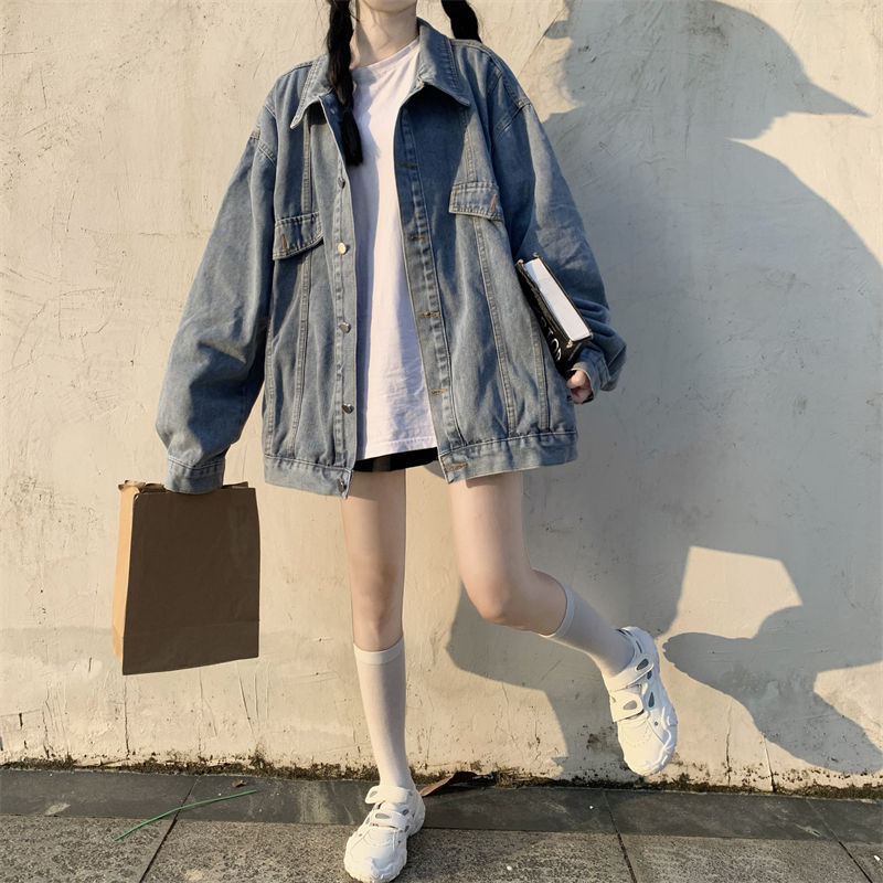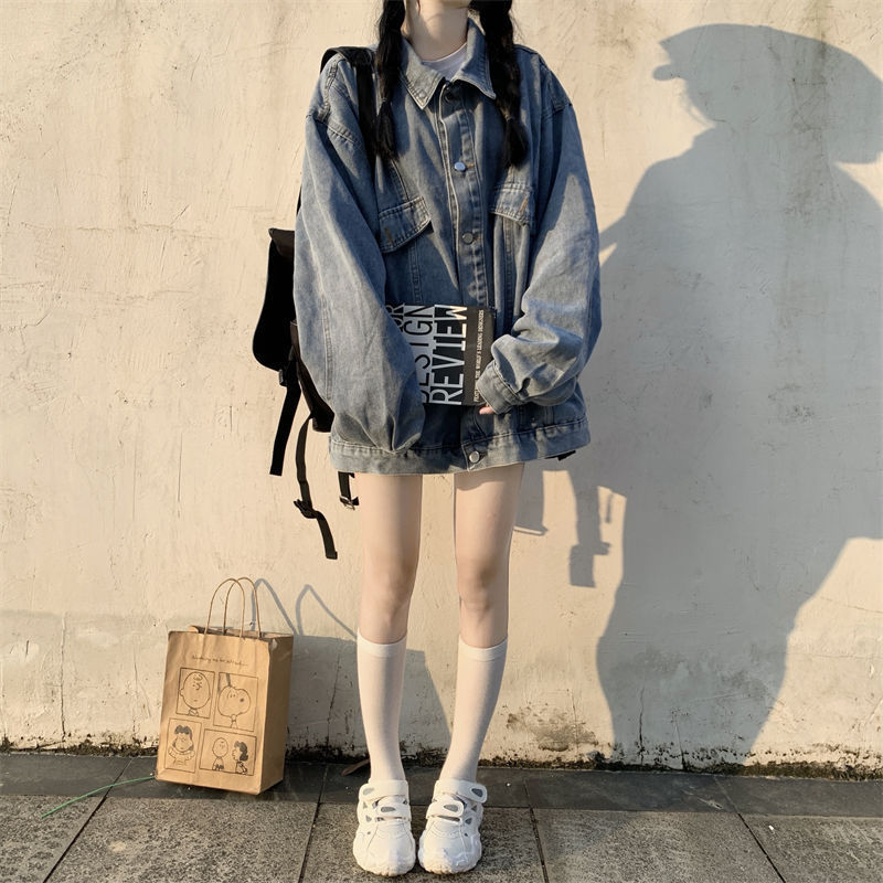 Women’s denim jacket Hong Kong style design loose plus size fat autumn and winter student workwear jacket raccoon spring goods
