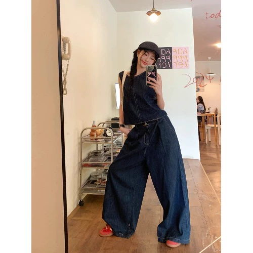 | nameOriginal | Women's Denim Retro Hong Kong Style Sleeveless Wide Leg Pants Vest |