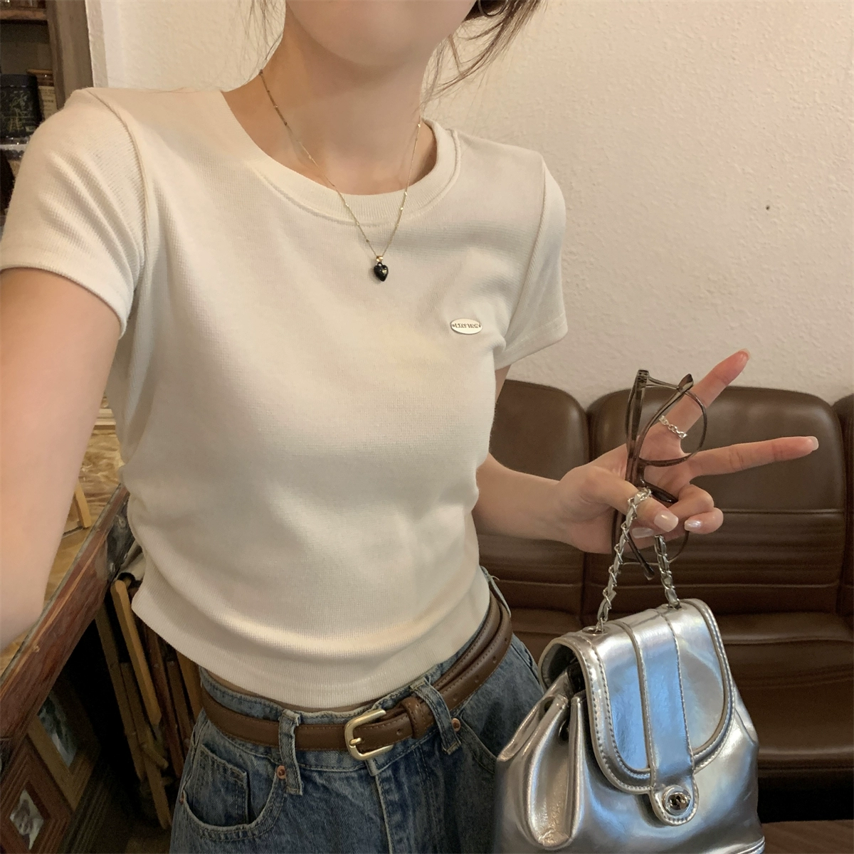 | nameOriginal | Women's design pleated casual right shoulder short sleeve T-shirt |