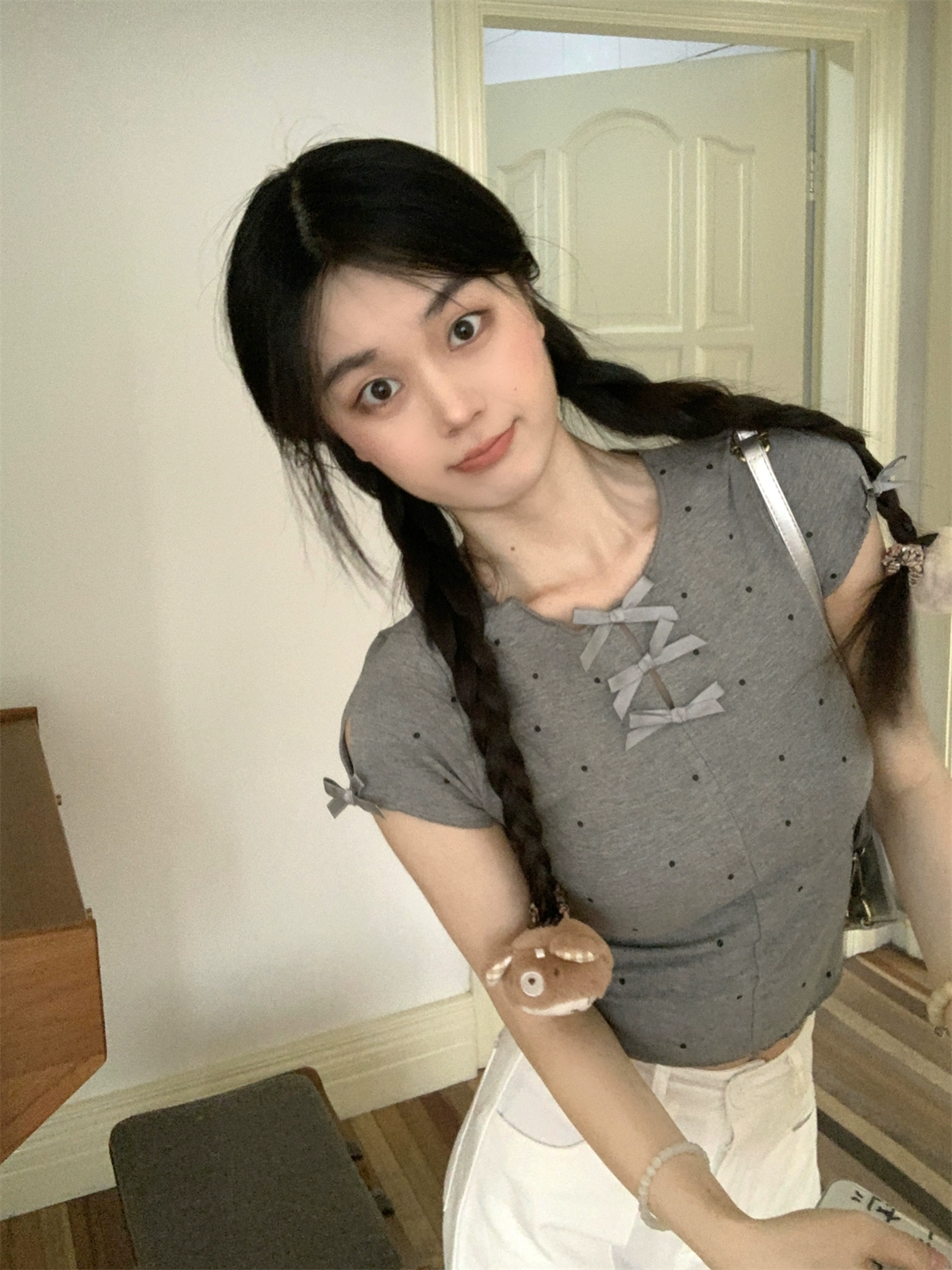 | nameOriginal | Women's design short sleeve slim fit polka dot bow |