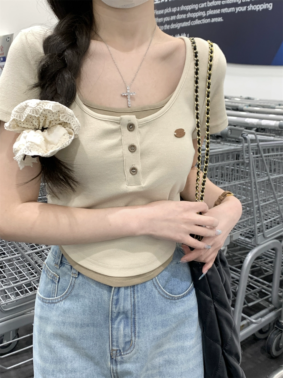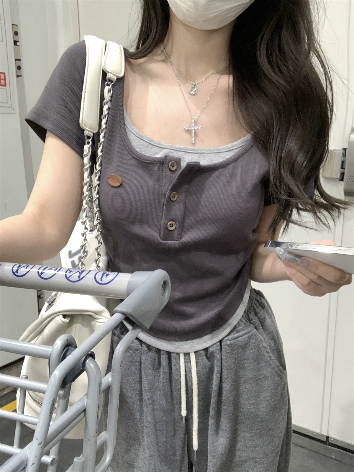 | nameOriginal | Women's designer short-sleeved contrasting color slim fit fake two-piece |