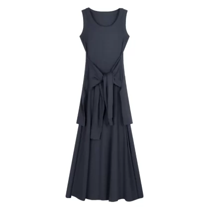 Women's designer sundress summer solid color fake two-piece