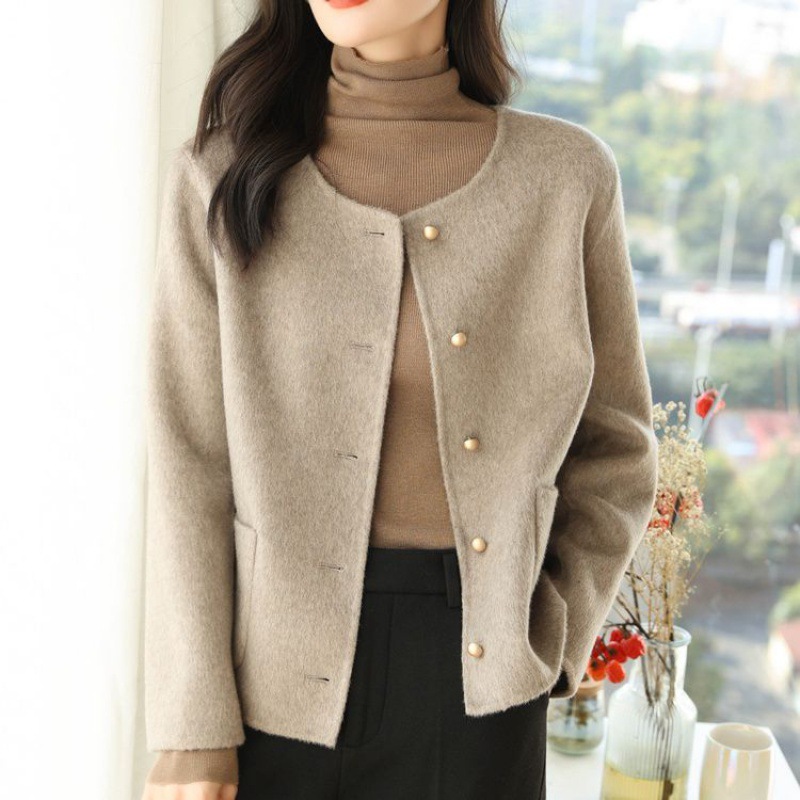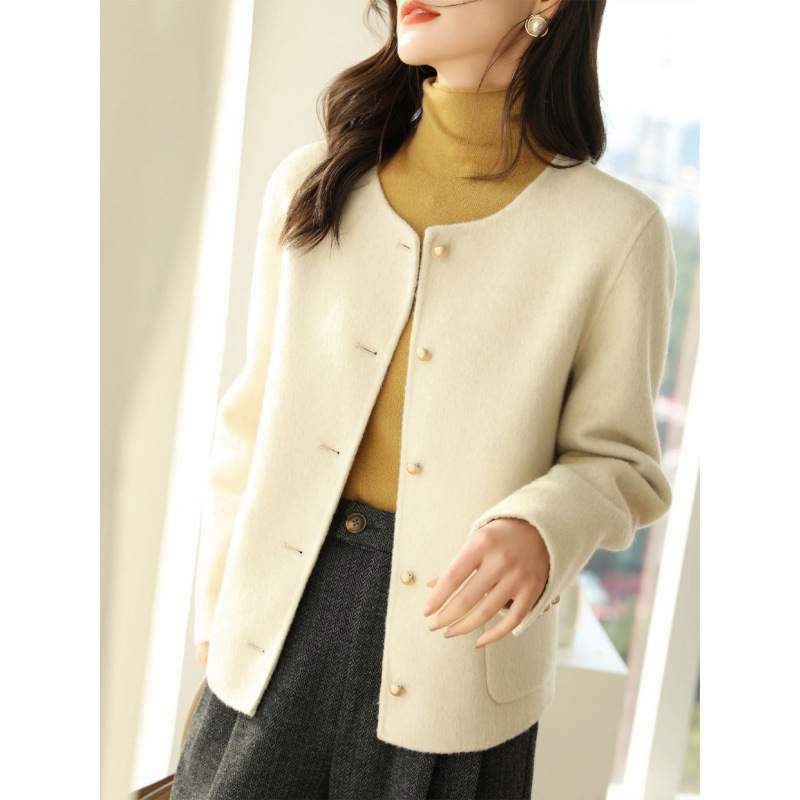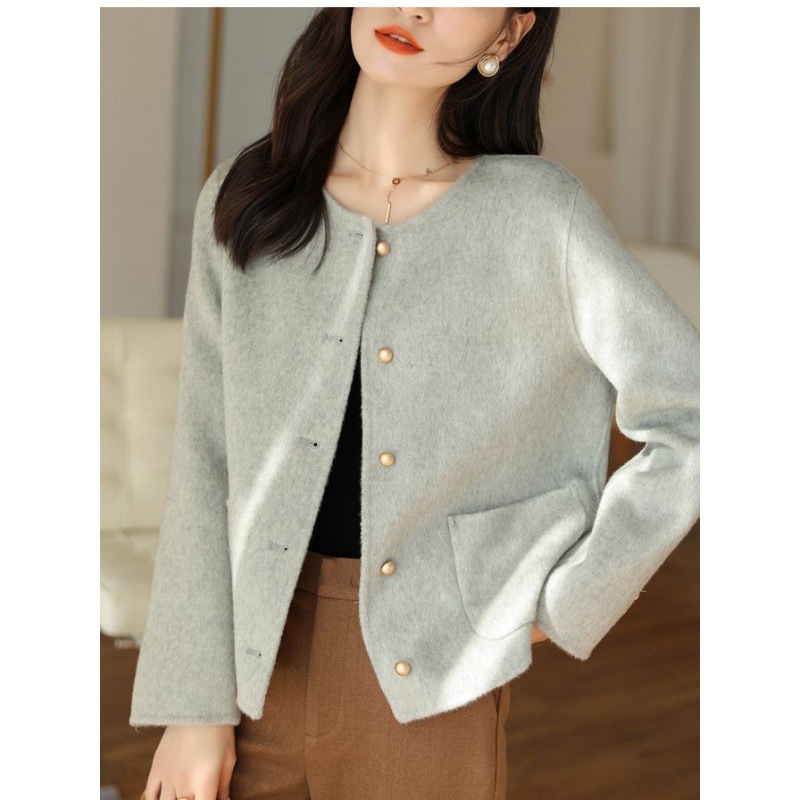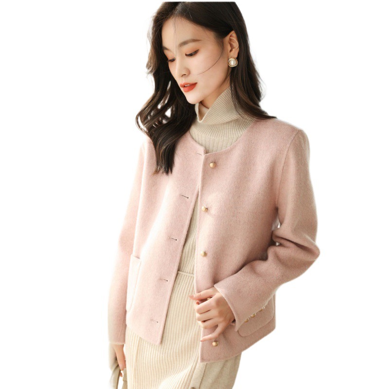 | nameOriginal | Women's double-sided velvet coat short 2023 new Korean style Chanel style single-breasted round neck age-reducing woolen coat |