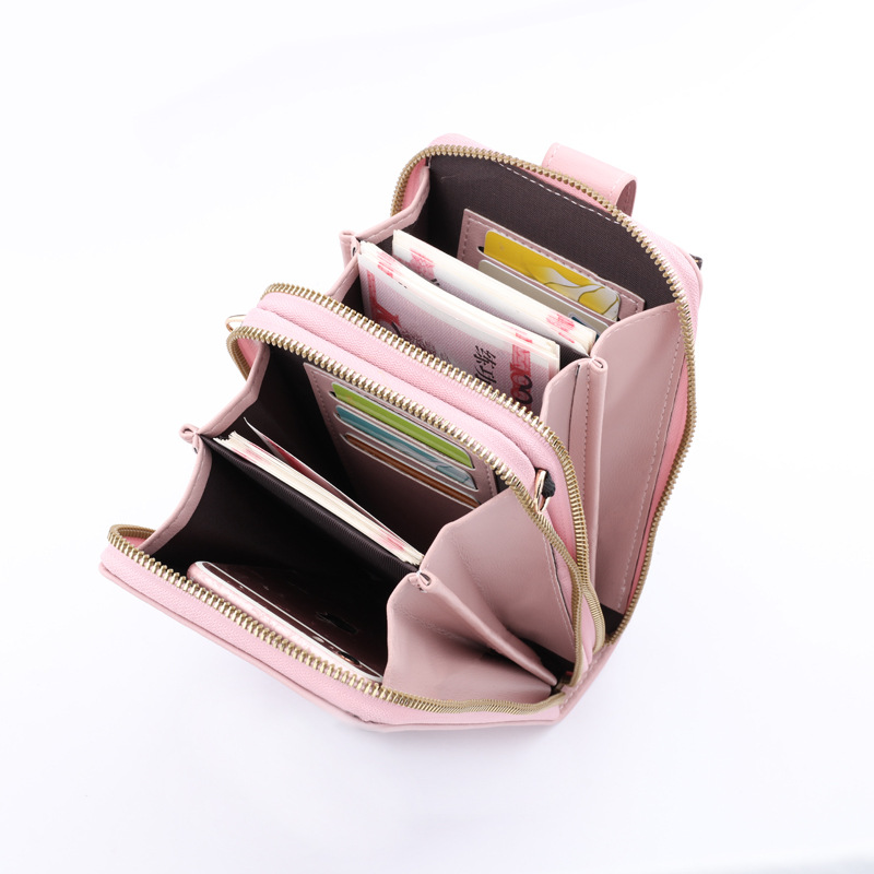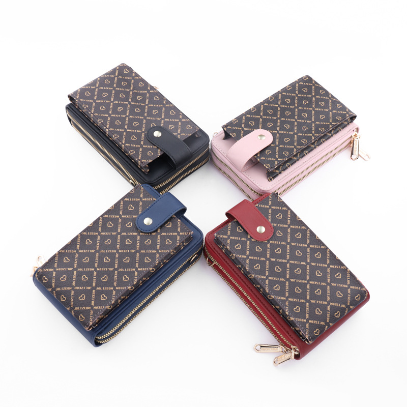 | nameOriginal | Women's double zipper mobile phone bag New crossbody large capacity shoulder small shoulder bag vertical contrast color three-layer women's long wallet |