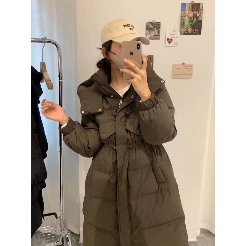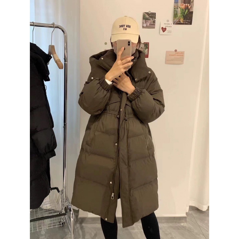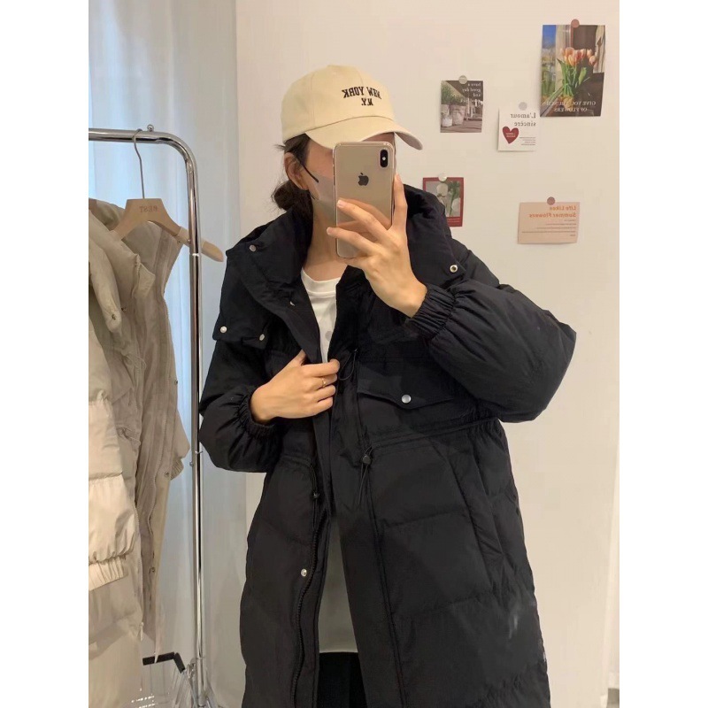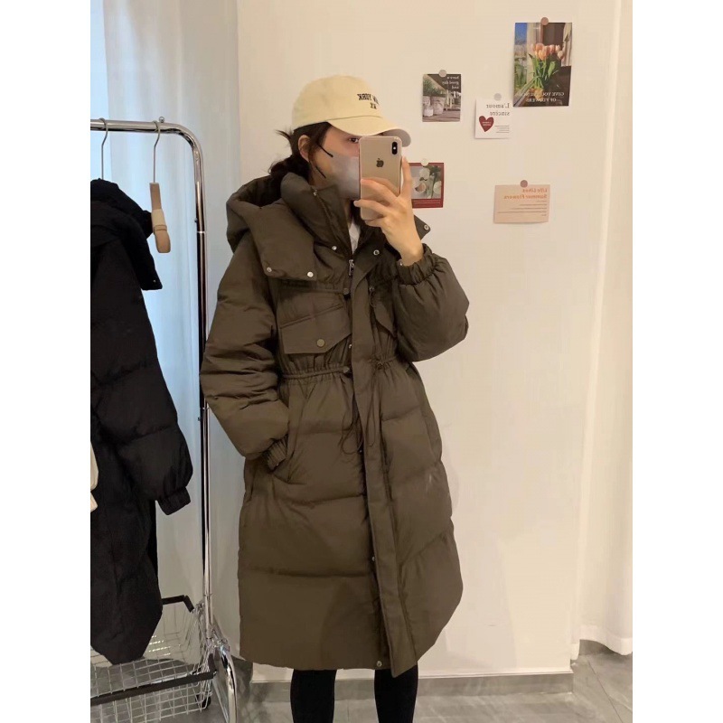 Women’s down jacket 2023 new hooded mid-length Korean style loose thickened waist slimming white duck down coat fashion