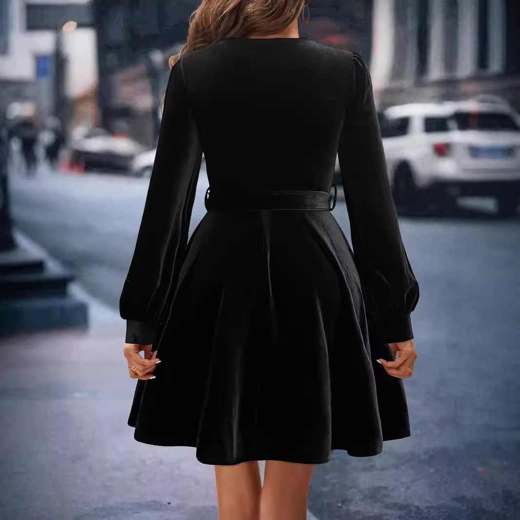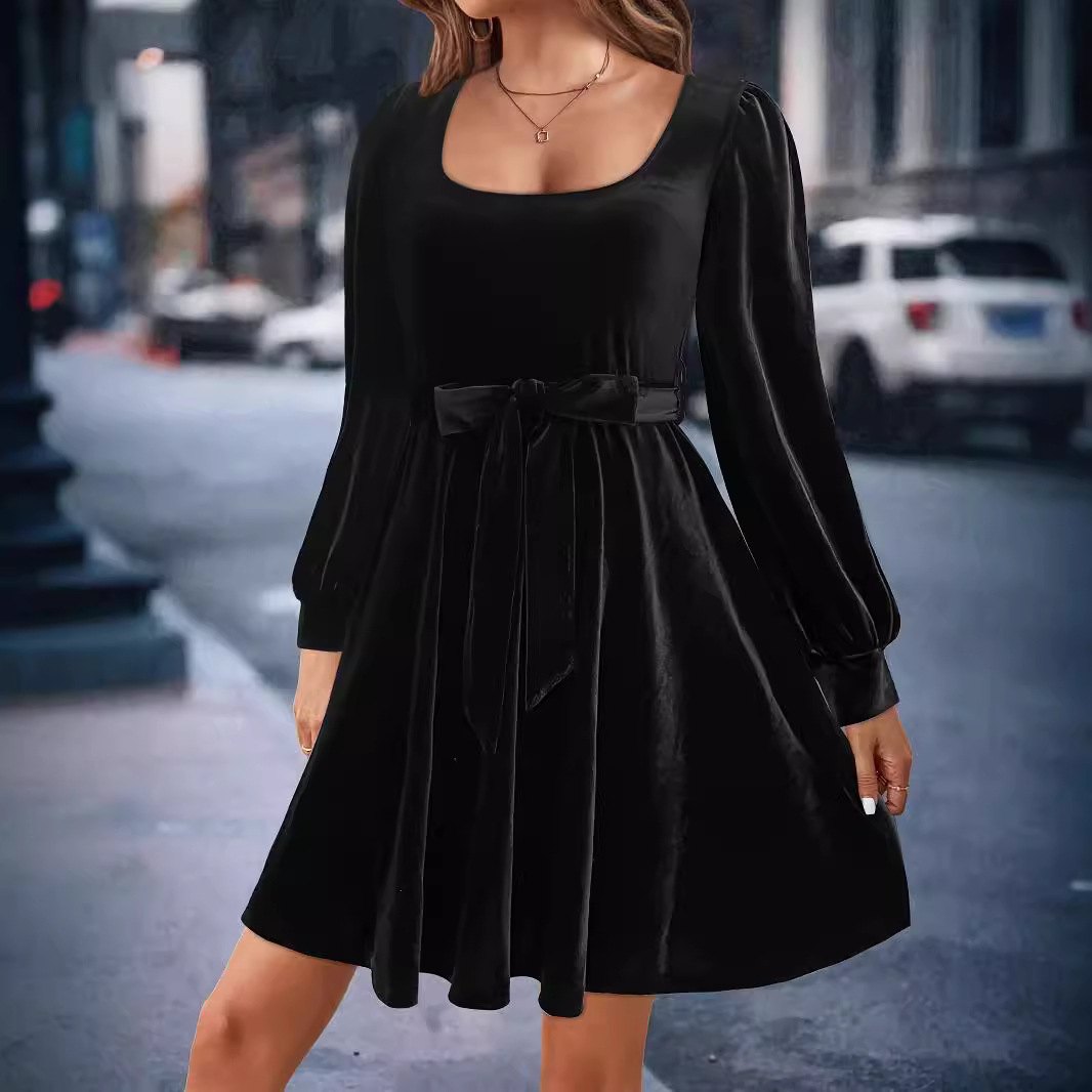 | nameOriginal | Women's Dress 2024 New Elegant Velvet Square Collar All-match Tight Waist Slim-fit Stretch Long-sleeved dress Skirt |