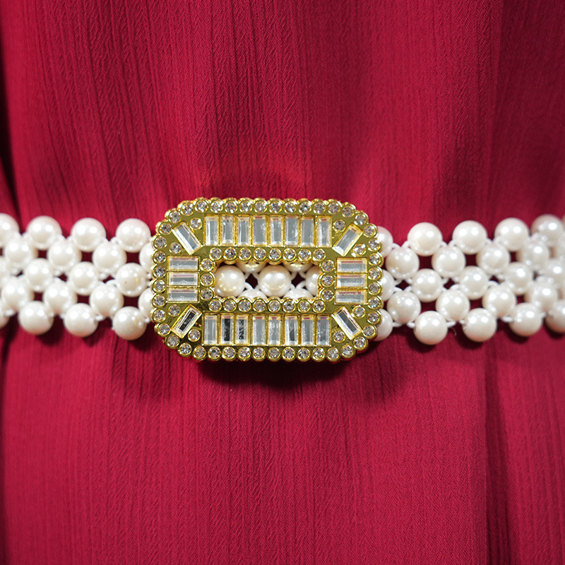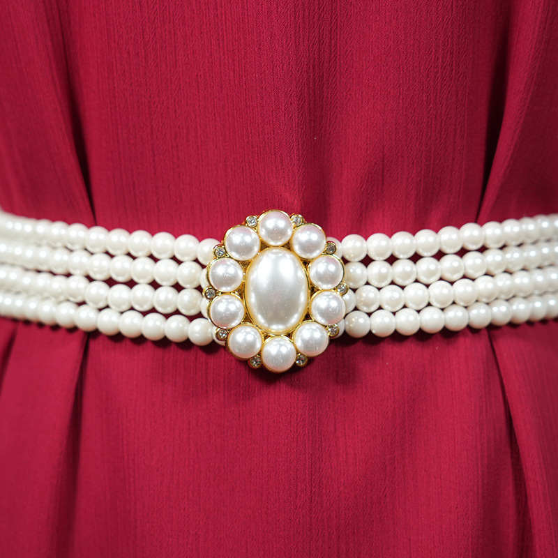 | nameOriginal | Women's dress decorative simple waist chain fashionable all-match four-row high quality Pearl elastic elastic rhinestone belt |