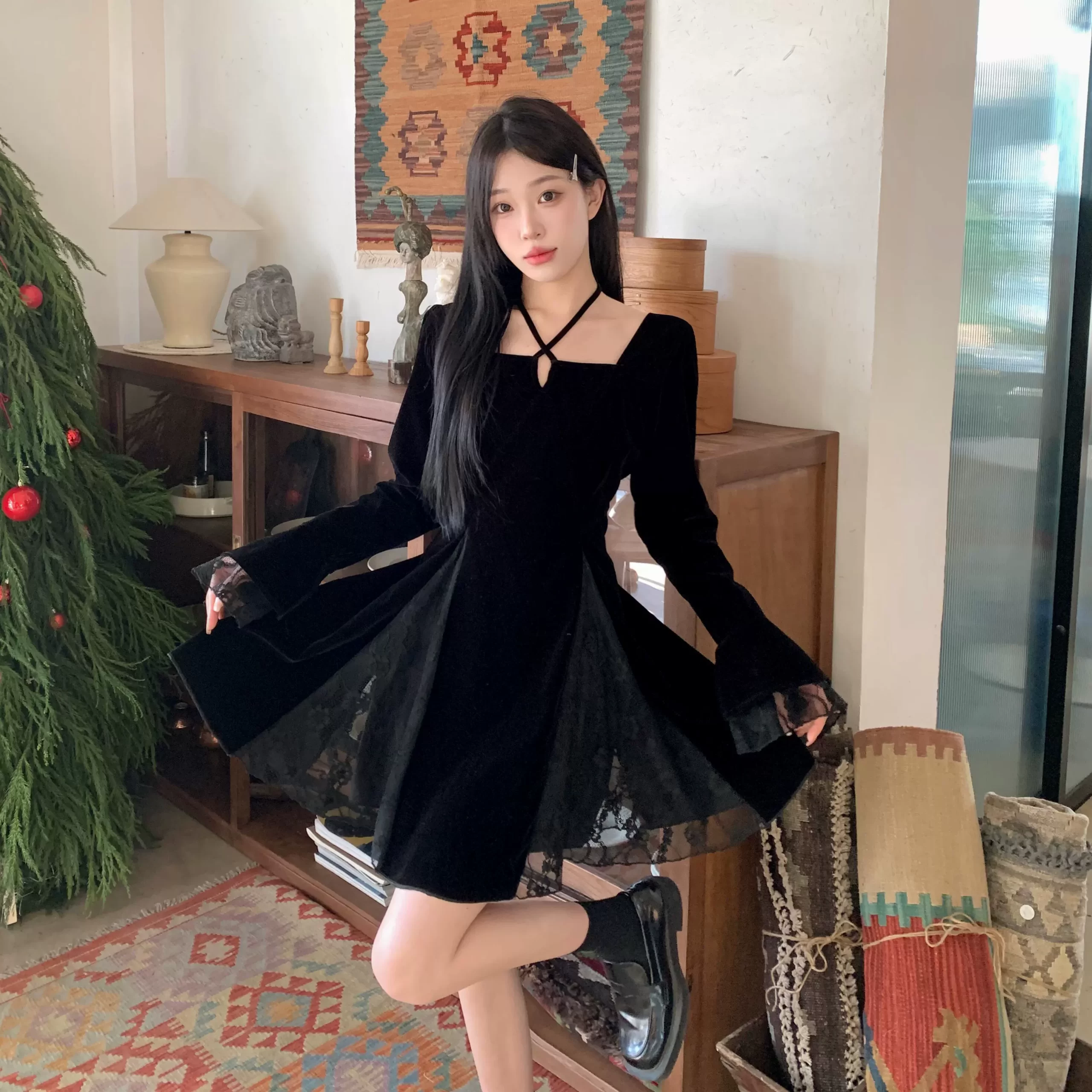 | nameOriginal | Women's dress spring style fat mm high waist slimming lace |