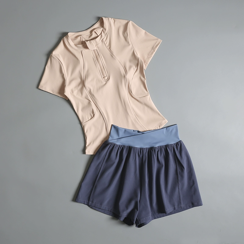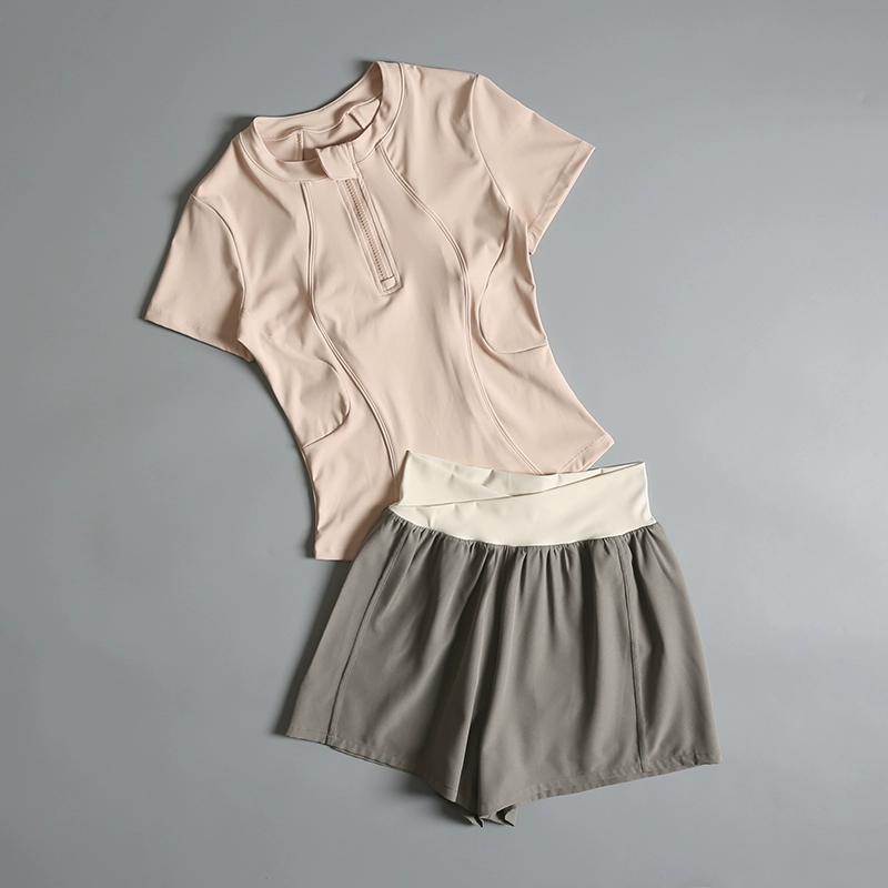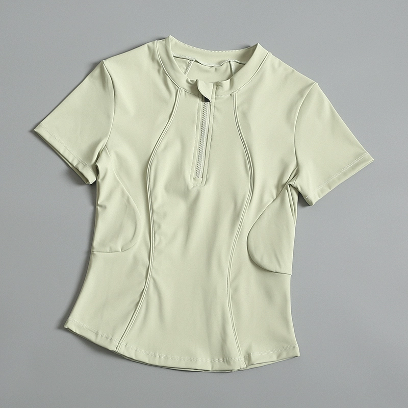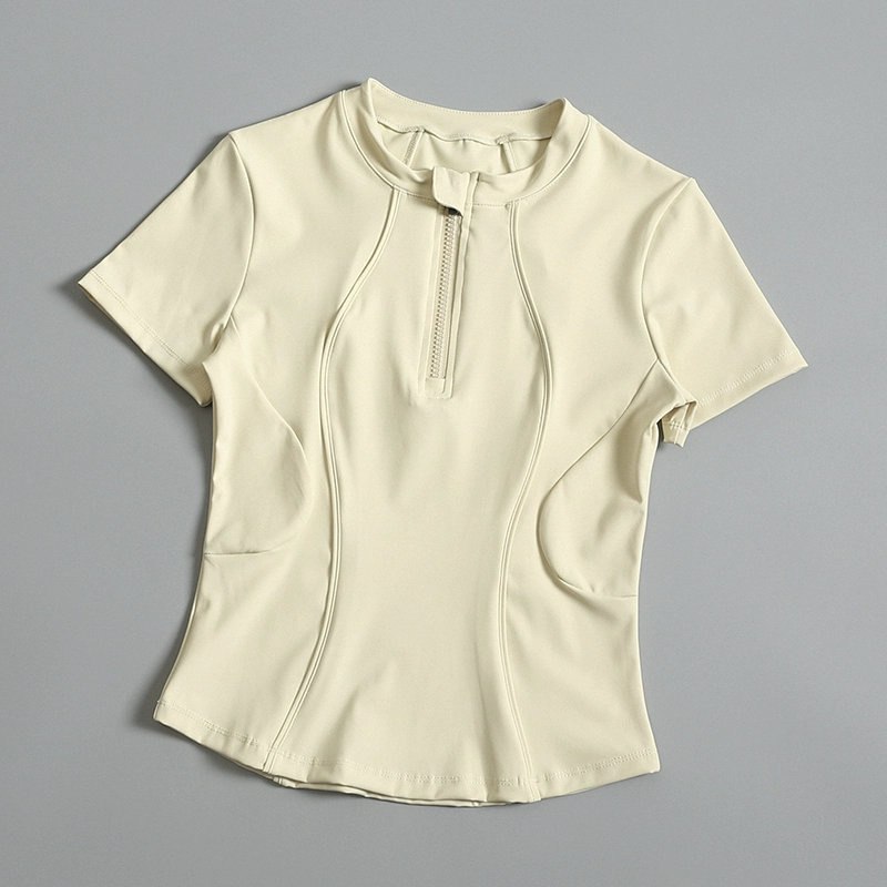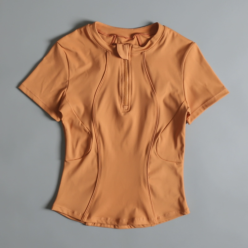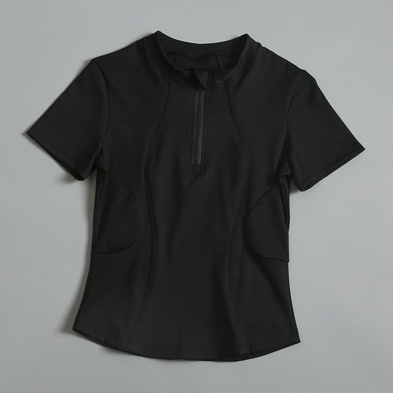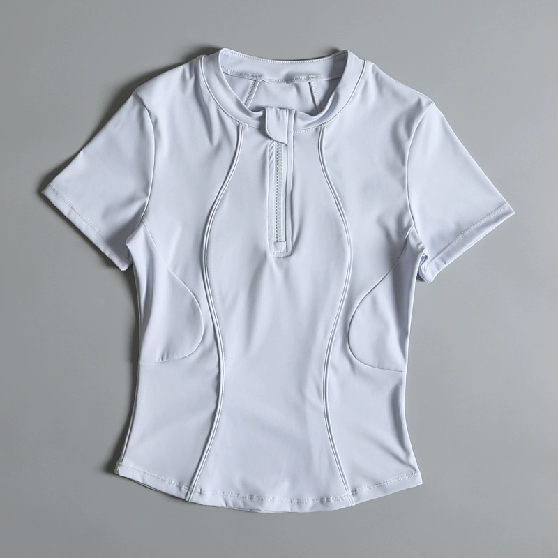 | nameOriginal | Women's elastic half-zip slimming short-sleeved top |