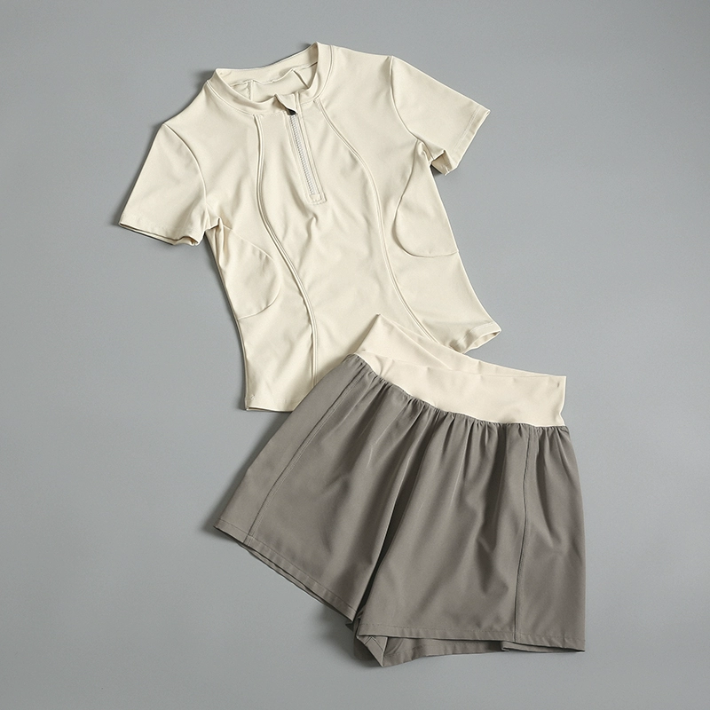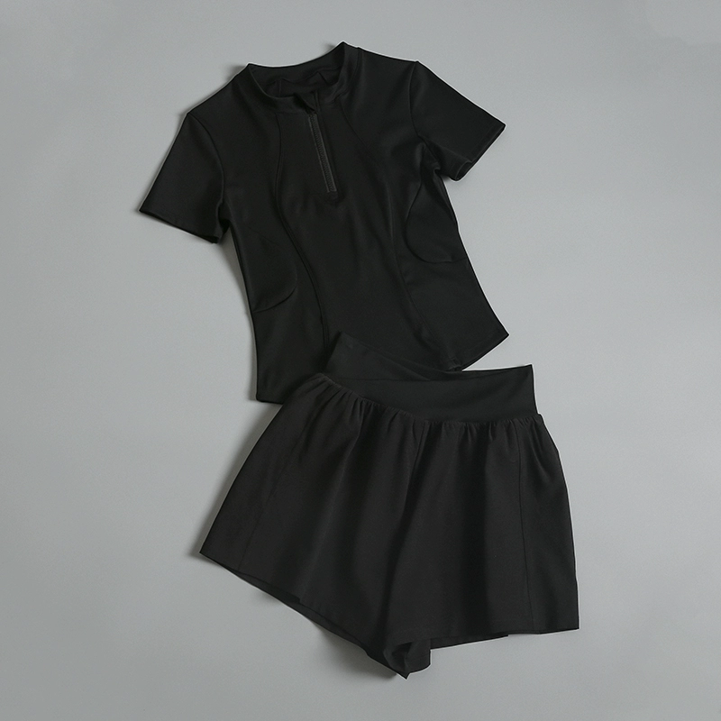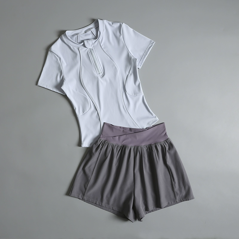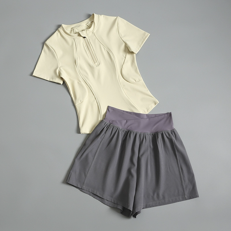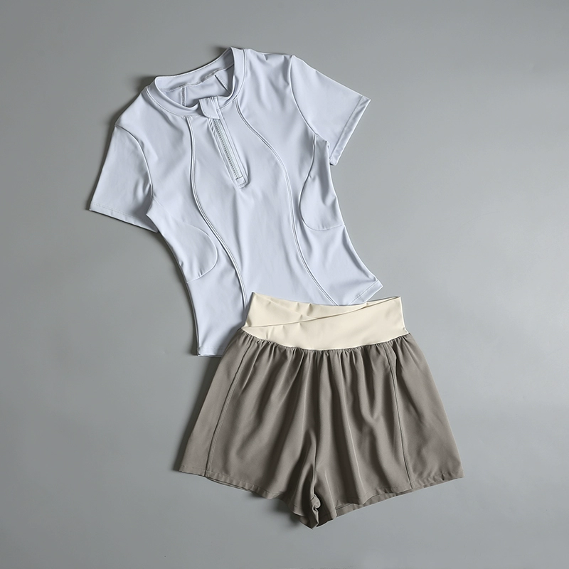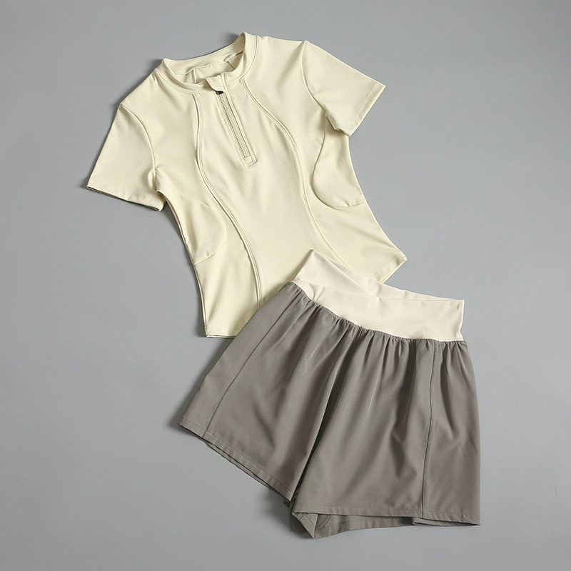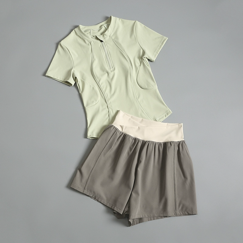 | nameOriginal | Women's elastic half-zip slimming short-sleeved top |