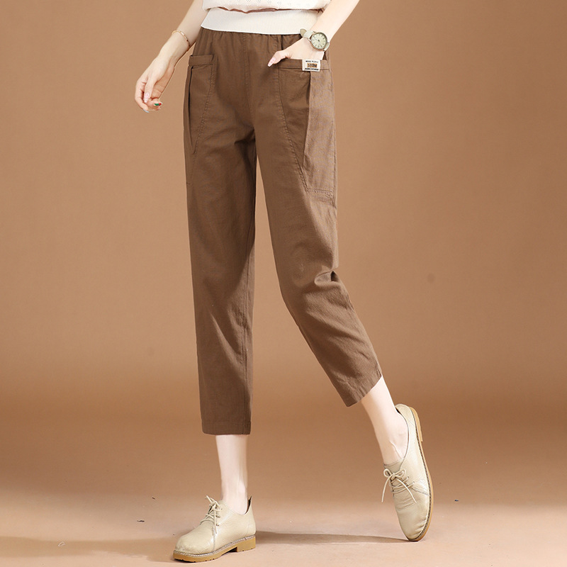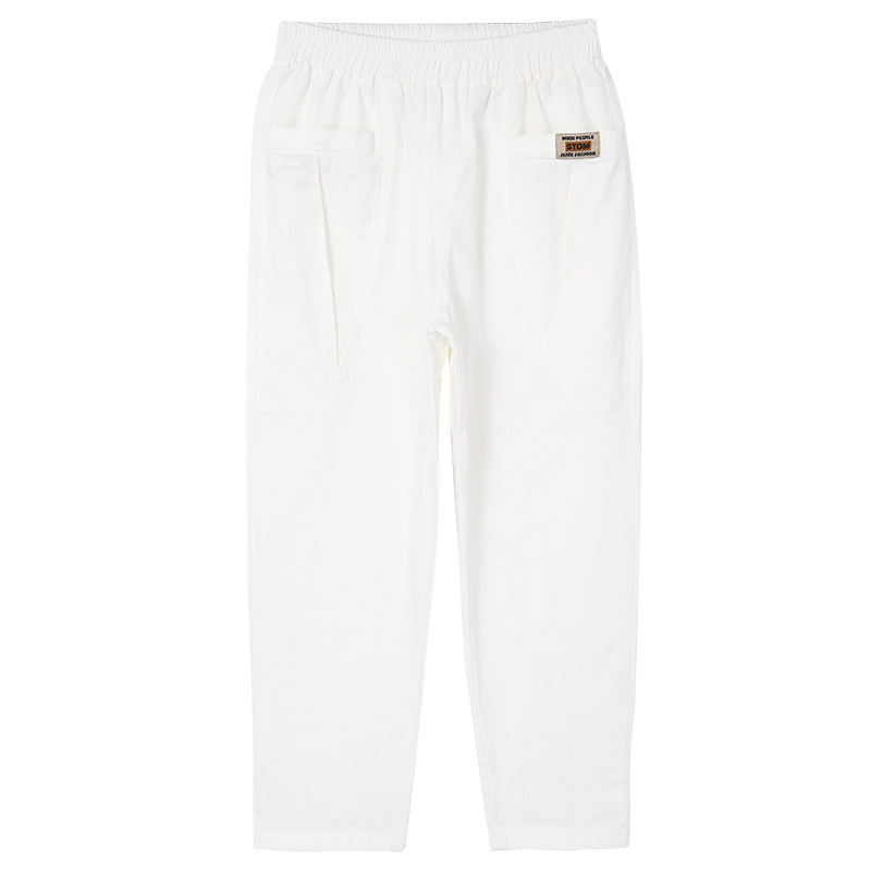 | nameOriginal | Women's elastic waist straight casual pants 2024 summer new cotton white cropped harem pants thin PT0583 |
