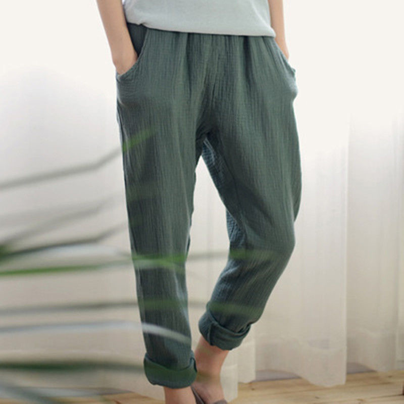 | nameOriginal | Women's Elasticated Waist Zen Pants Soft and Waxy Pants Summer Thin Double-Layer Cotton and Linen Trousers Loose plus size Casual Pants |