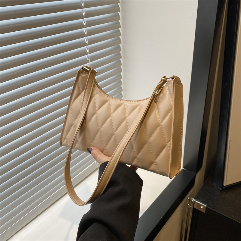 Women's Elegant Simple Rhombic Embroidery Threading Niche Underarm Bag 2024 Spring and Summer High-end Shoulder Bag Korean Style Small Square Bag