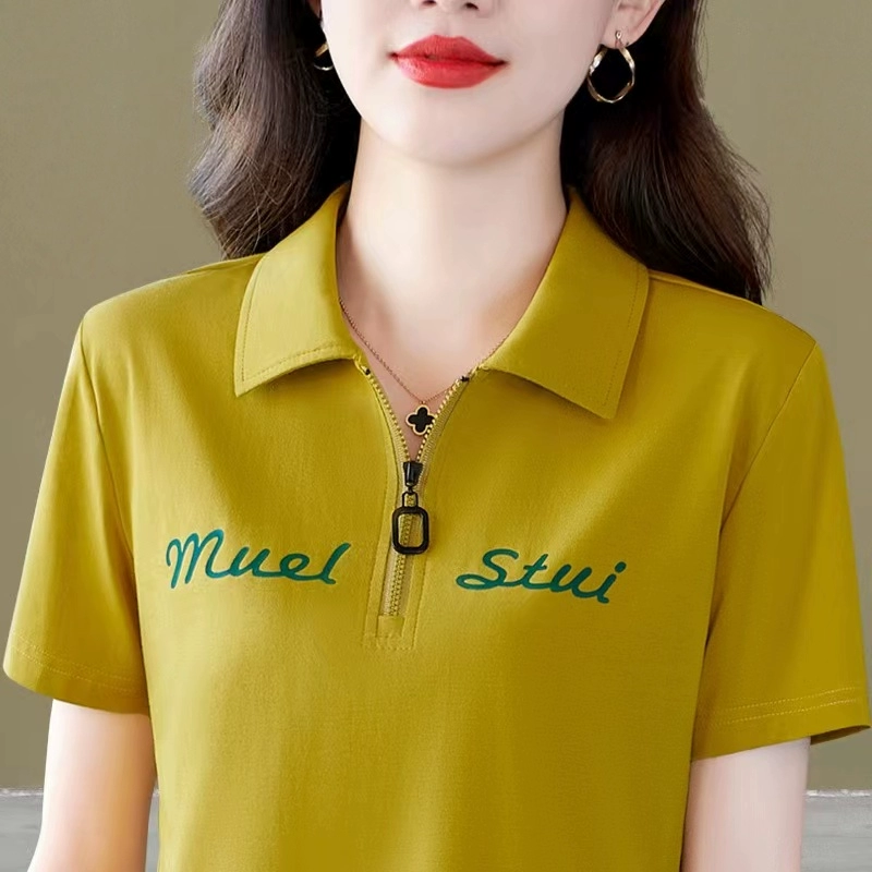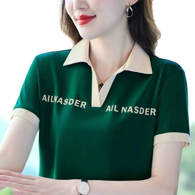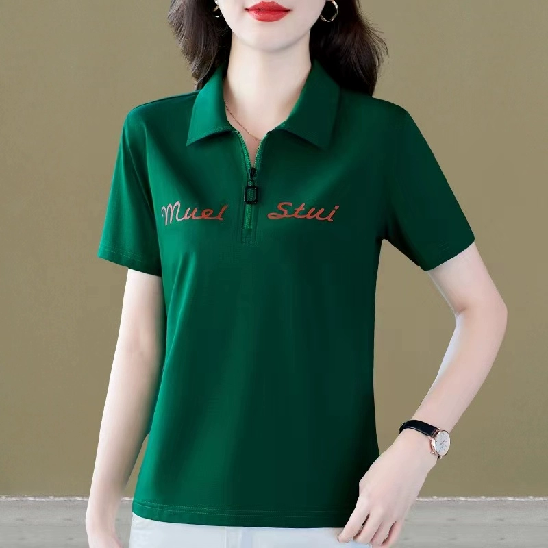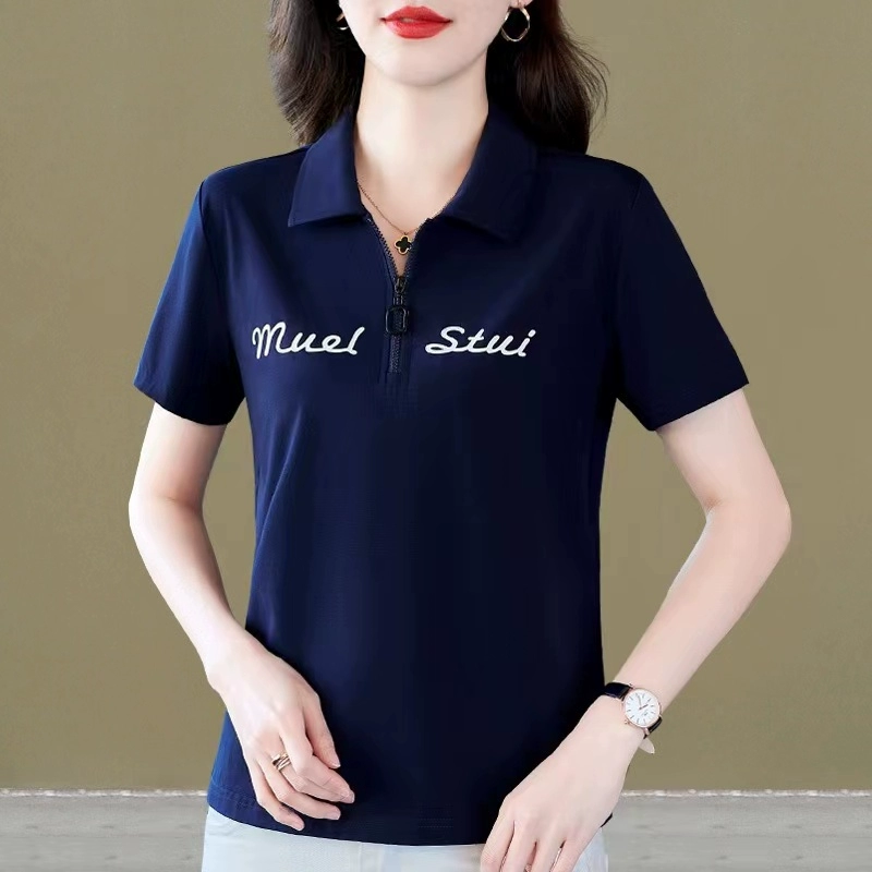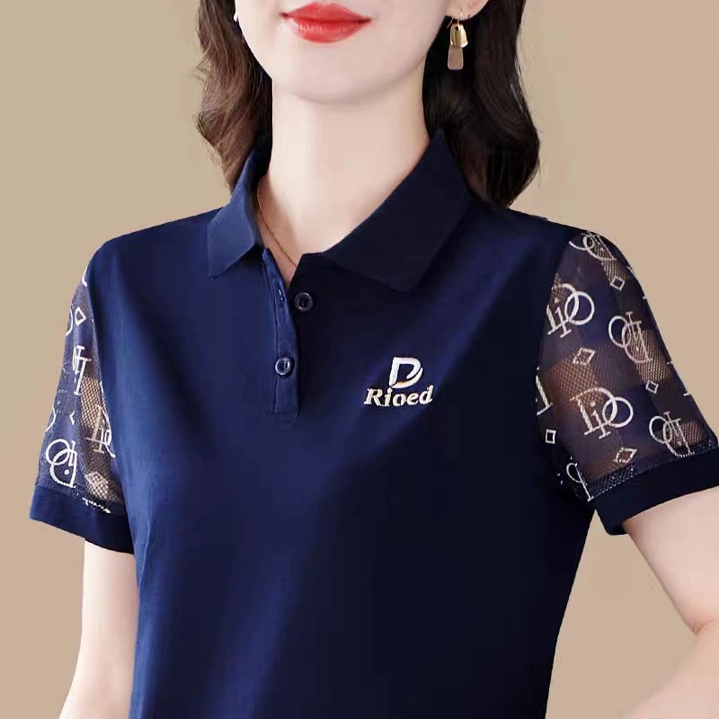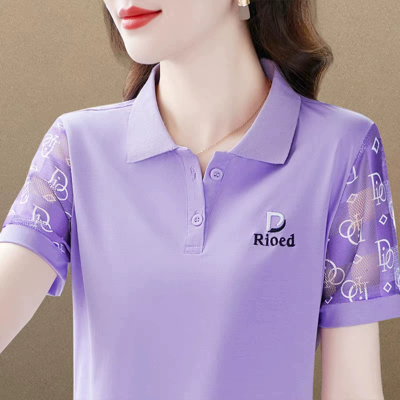Women's Embroidered Short Sleeve Slim Fit POLO Shirt Lapel Mesh