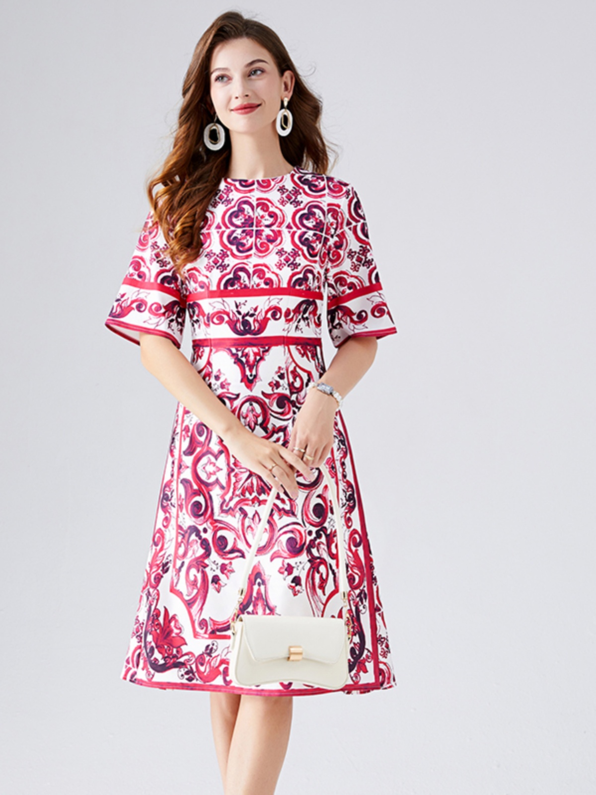 | nameOriginal | Women's European and American positioning slim high waist mid-sleeve dress |