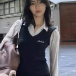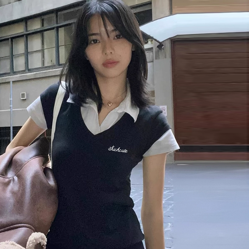 Women’s clothing, European and American college style, versatile slim short-sleeved embroidery