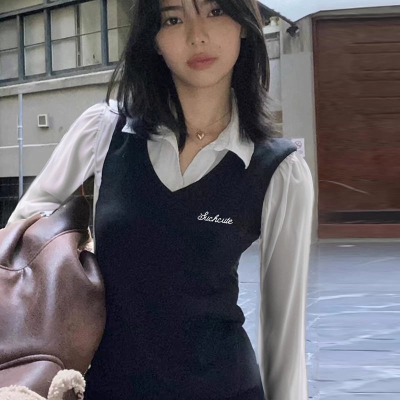 Women's European and American preppy style versatile slimming short-sleeved embroidery
