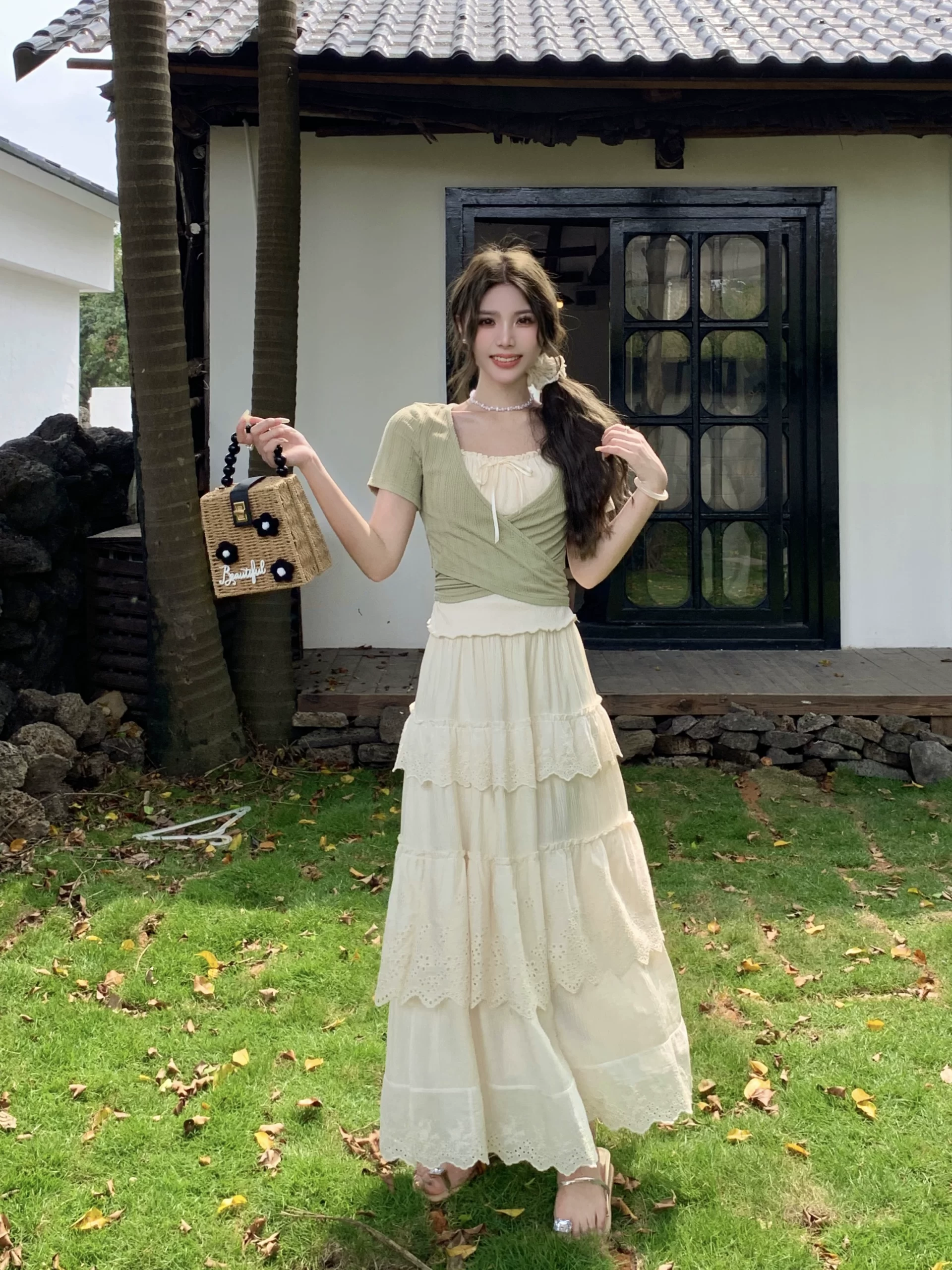 | nameOriginal | Women's fake two-piece right shoulder short-sleeved T-shirt cake summer dress |