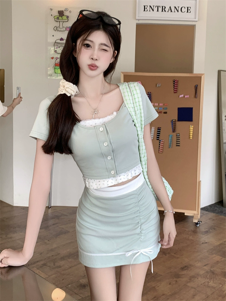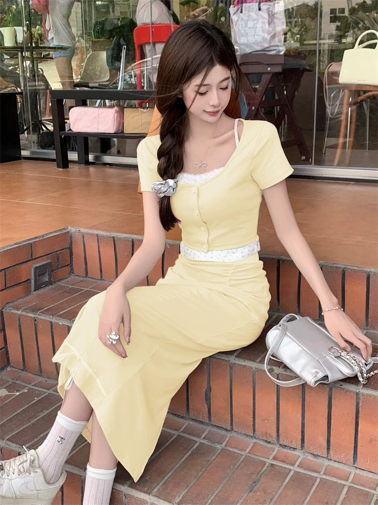 Women's fake two-piece short-sleeved T-shirt half-length skirt summer dress
