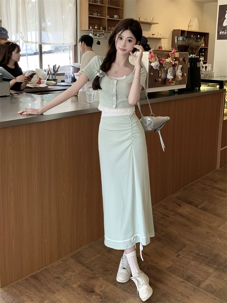 Women’s fake two-piece short-sleeved T-shirt half-length skirt summer dress