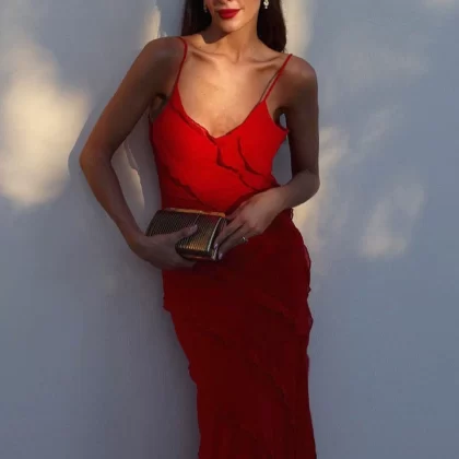 | nameOriginal | Women's fashionable long dress tall girl sleeveless suspender belt |
