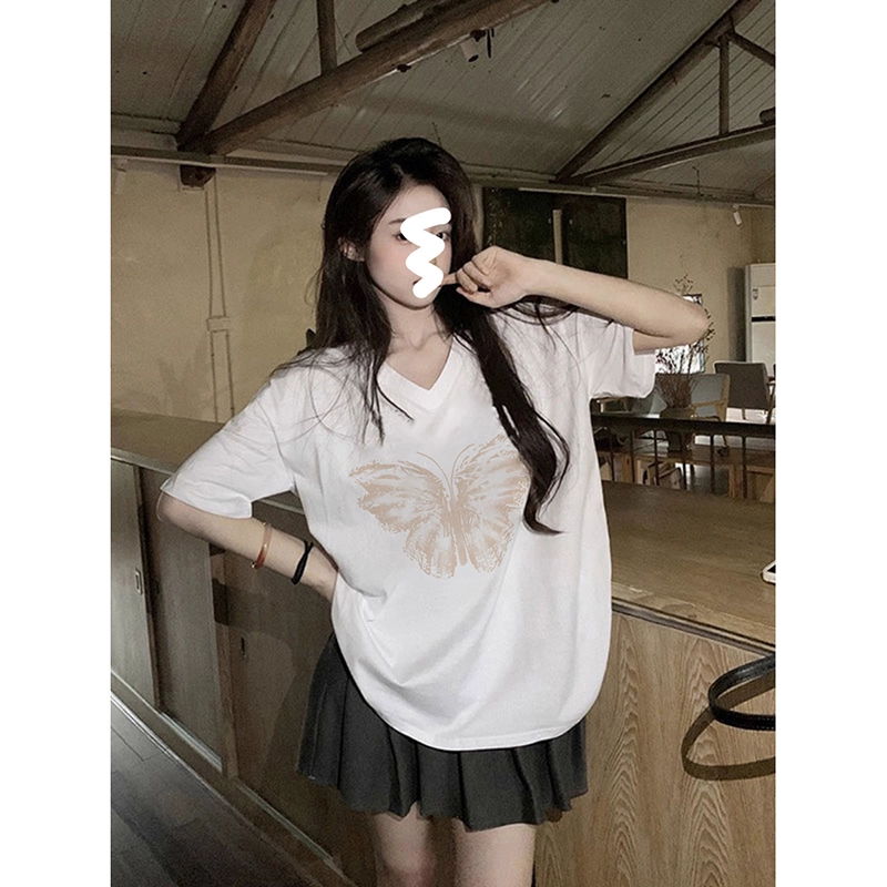 | nameOriginal | Women's fat mm loose retro black v-neck short-sleeved t-shirt |