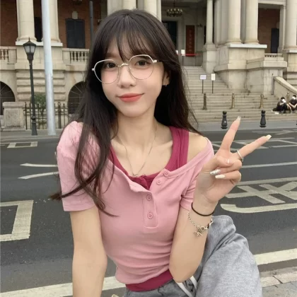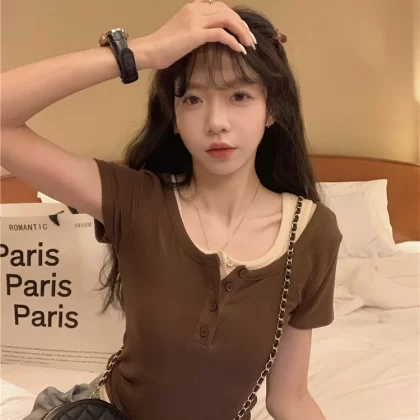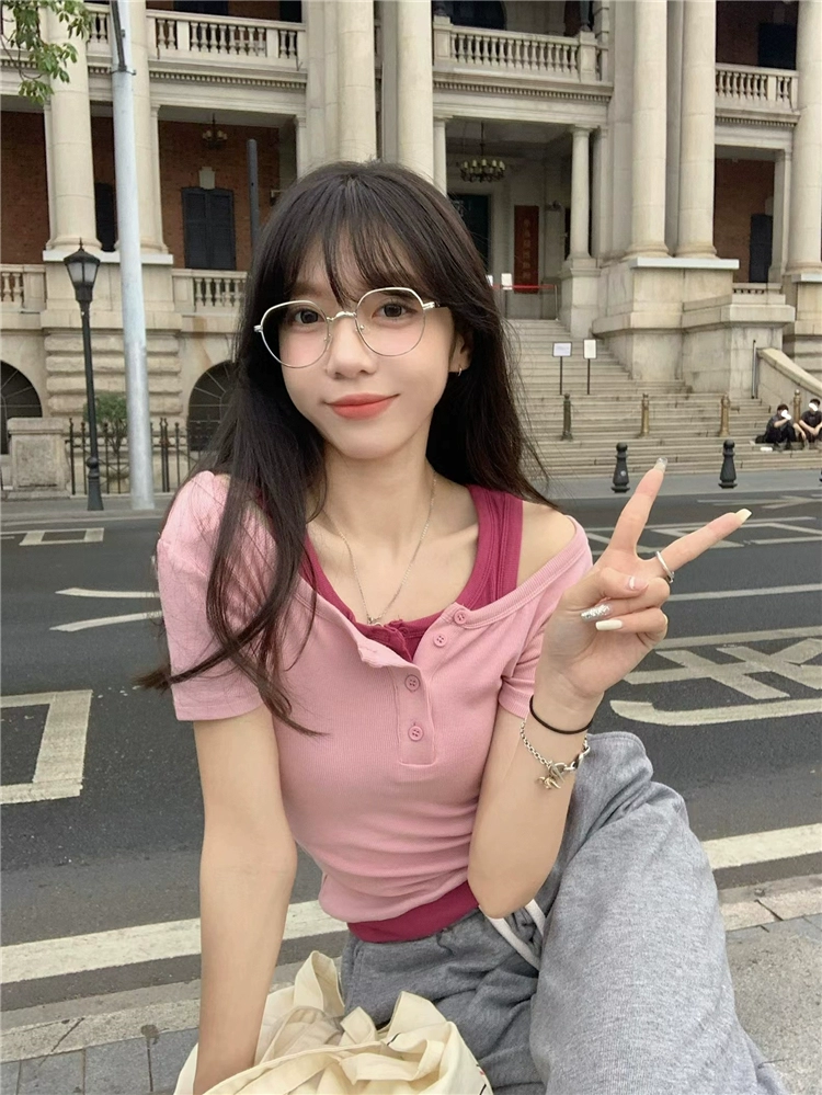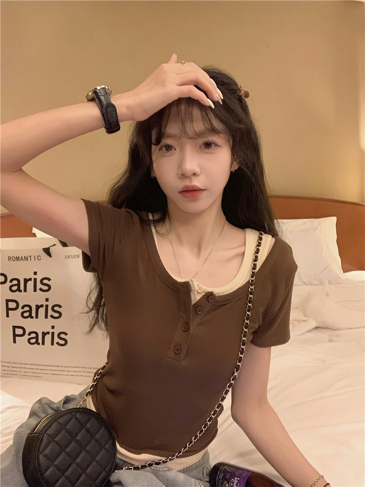 | nameOriginal | Women's fat mm slimming fake two-piece short-sleeved t-shirt |