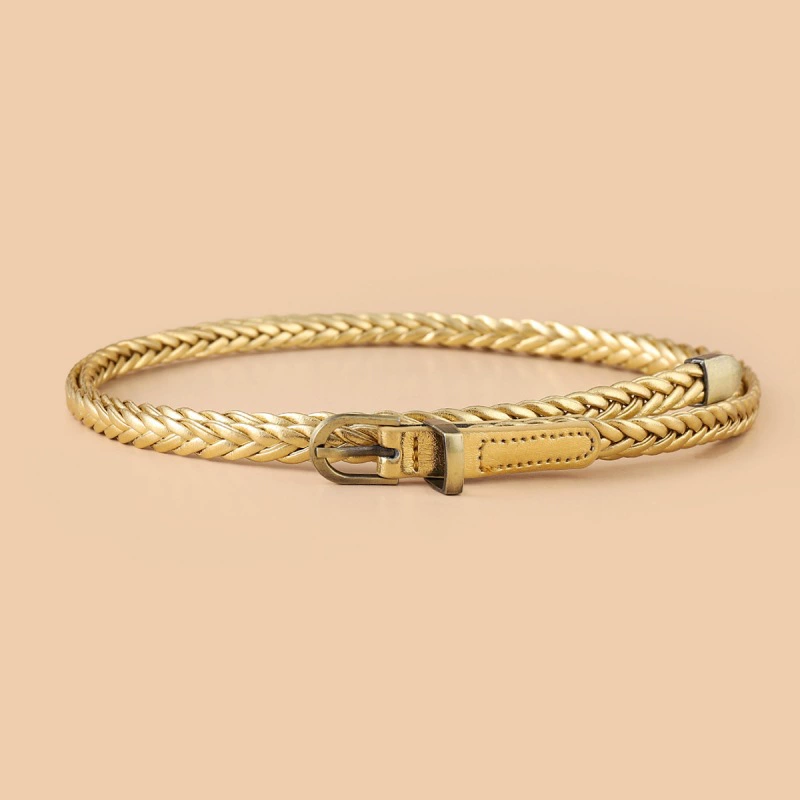 Women’s fine braided belt Korean versatile punch-free retro skirt with simple narrow belt waist rope waist decoration