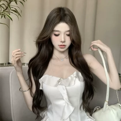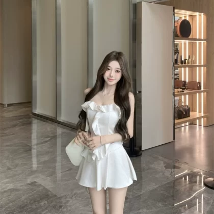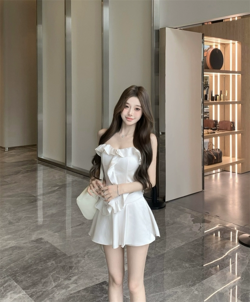 Women’s fishbone tube top summer short skirt pants two-piece set satin