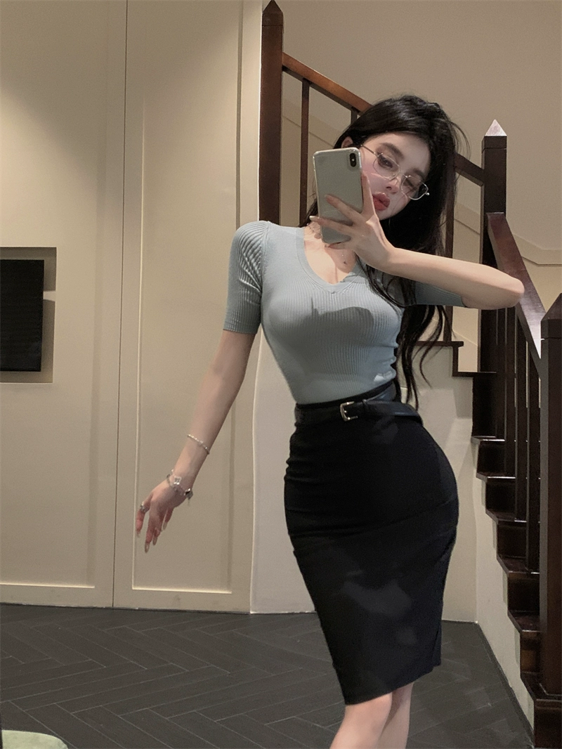 | nameOriginal | Women's fit summer waist-cinching right shoulder top short sleeves |