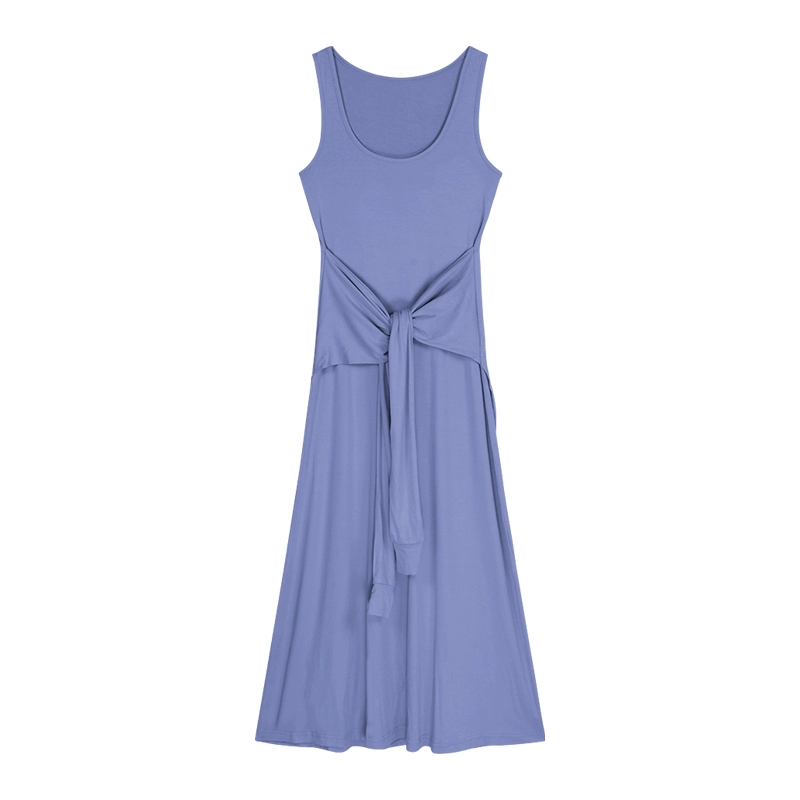 | nameOriginal | Women's fitted dress blue temperament fake two piece |