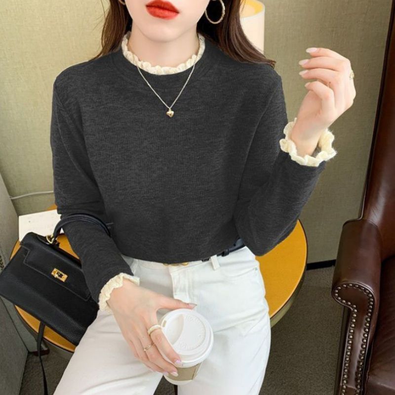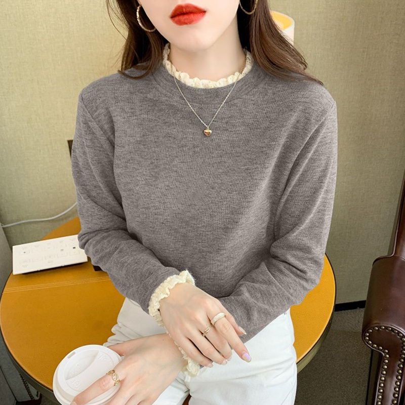 | nameOriginal | Women's fleece-lined Base Shirt with Thick Fleece Mock High Neck Long Sleeve Women's New Inner Shirt Lace Warm Top |