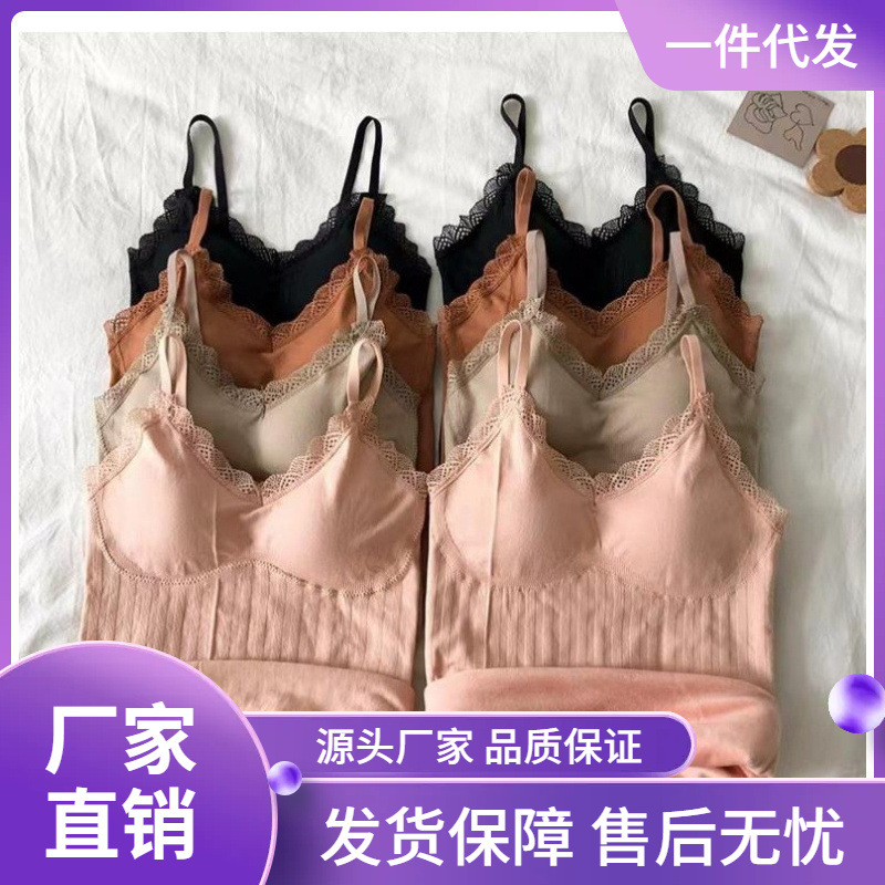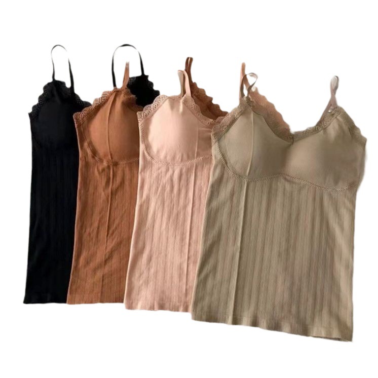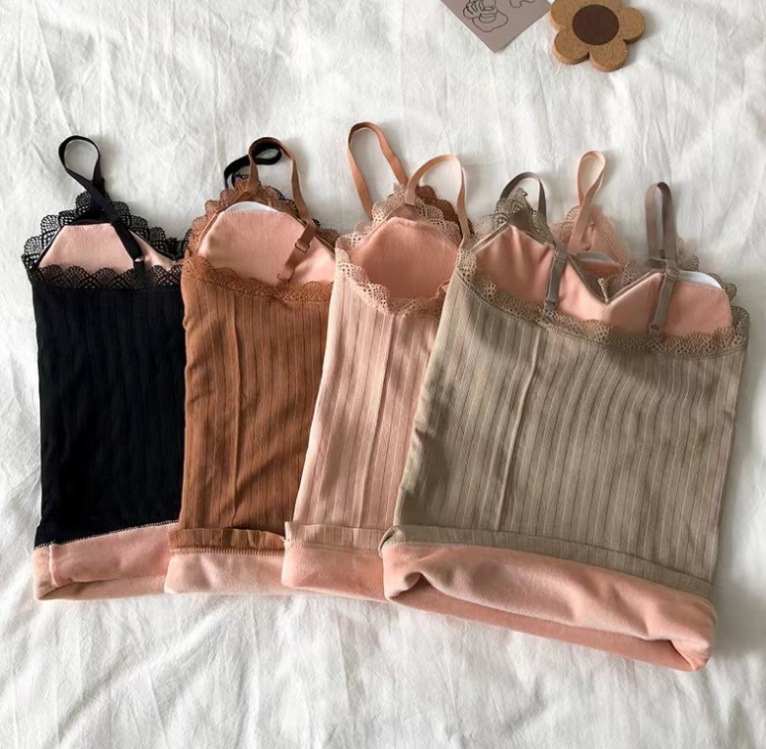 Women's fleece-lined Thickened Warm Base Shirt with Chest Pad Inner Camisole Vest with Chest Pad Winter Sleeveless Top with Hanging Neck