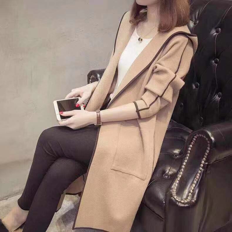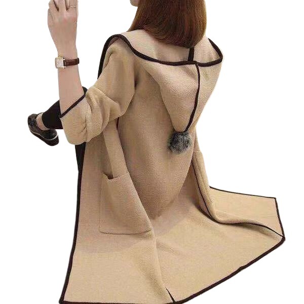 Women’s fleece-lined Thickened Windbreaker for Autumn and Winter Mid-length Slimming Versatile Imitation Wool Long-sleeved Cardigan Hooded Jacket