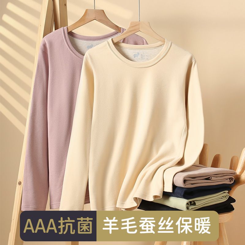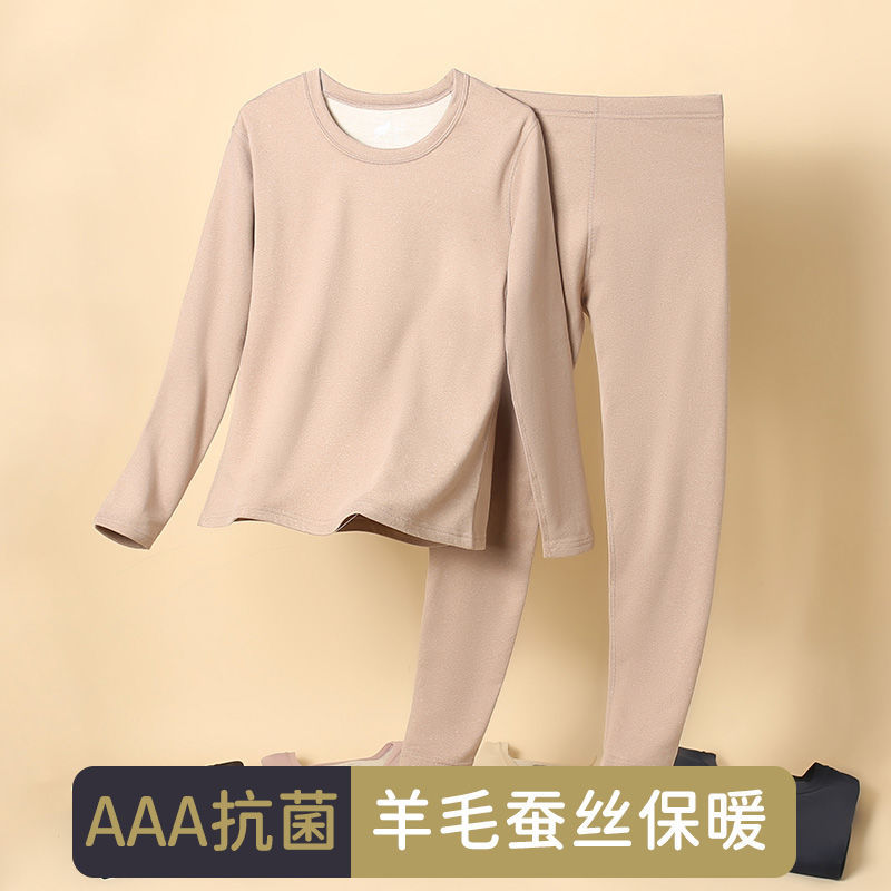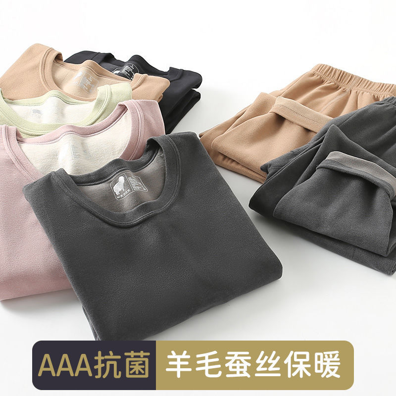 Women's Fleece Wool Silk Thermal Underwear Set Autumn Clothes and Pants Women's Fleece-Lined Thickened Brushed Base Shirt