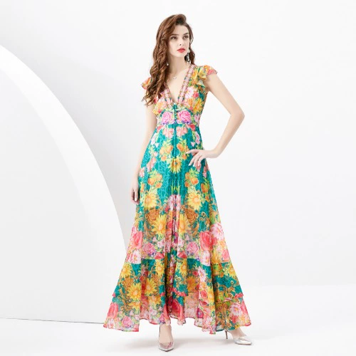 | nameOriginal | Women's French deep V-neck wide hem painted dress |